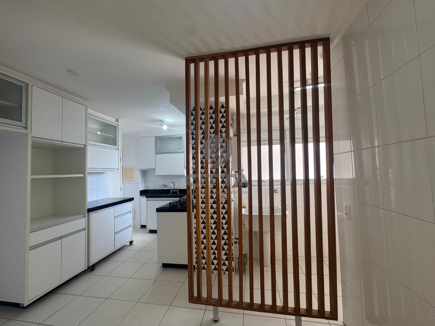 A cozinha funcional possui copa e móveis planejados, e a área de serviço inclui um banheiro de apoio.