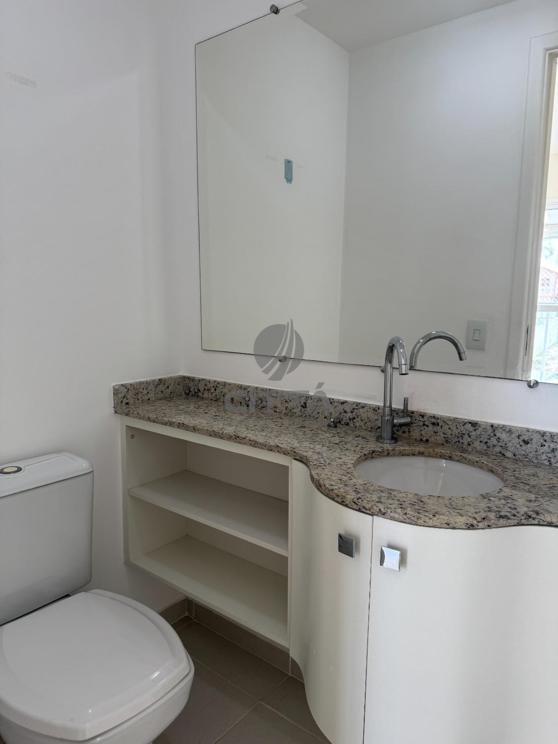 A área íntima conta com piso laminado, enquanto a social é revestida em porcelanato.