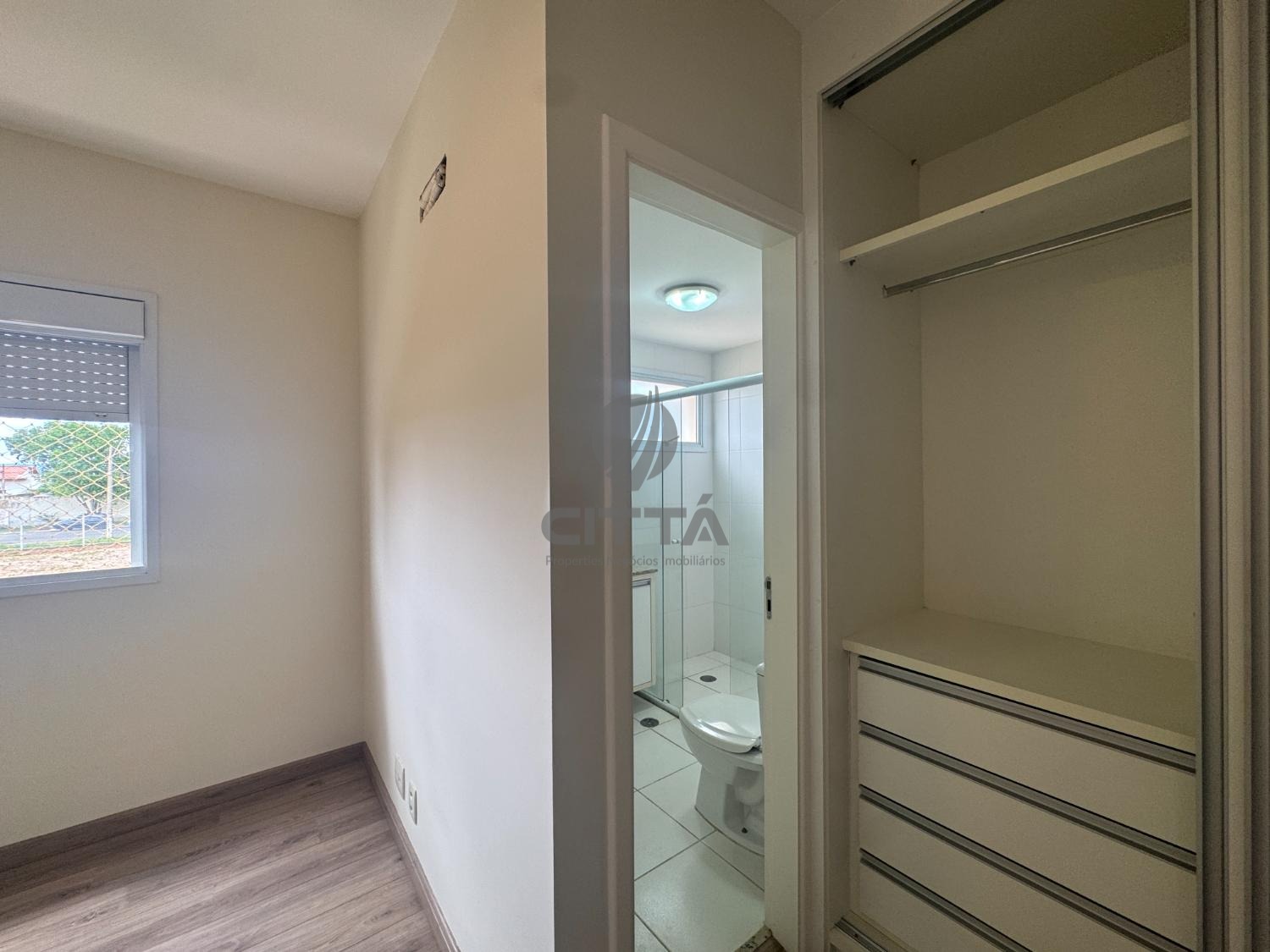 Todos os quartos têm armários planejados, exceto o dormitório com acesso à varanda.