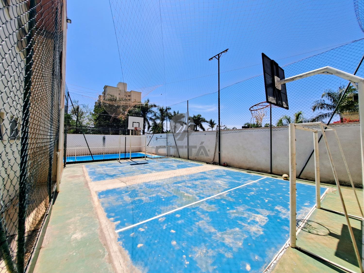Lazer e segurança no condomínio, com portaria 24h, piscina, quadra poliesportiva, salão de festas, sala de jogos e brinquedoteca.