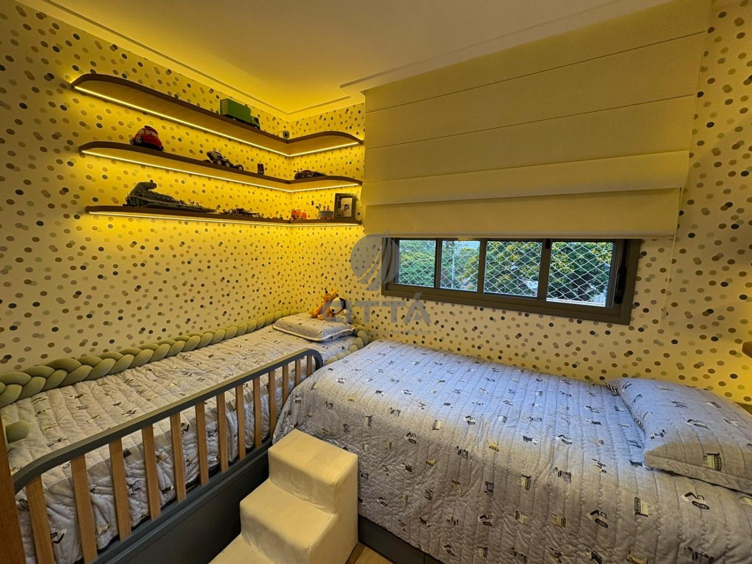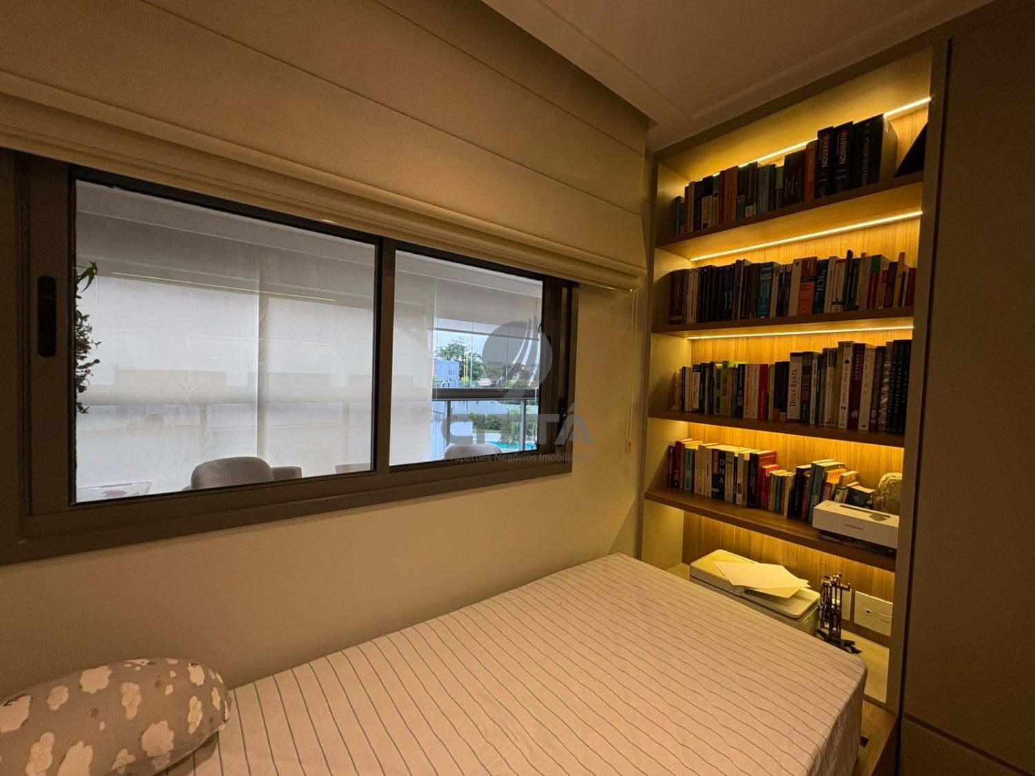O apartamento conta ainda com um projeto de iluminação diferenciado e marcenaria planejada em todos os ambientes.