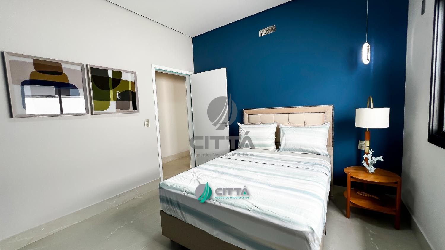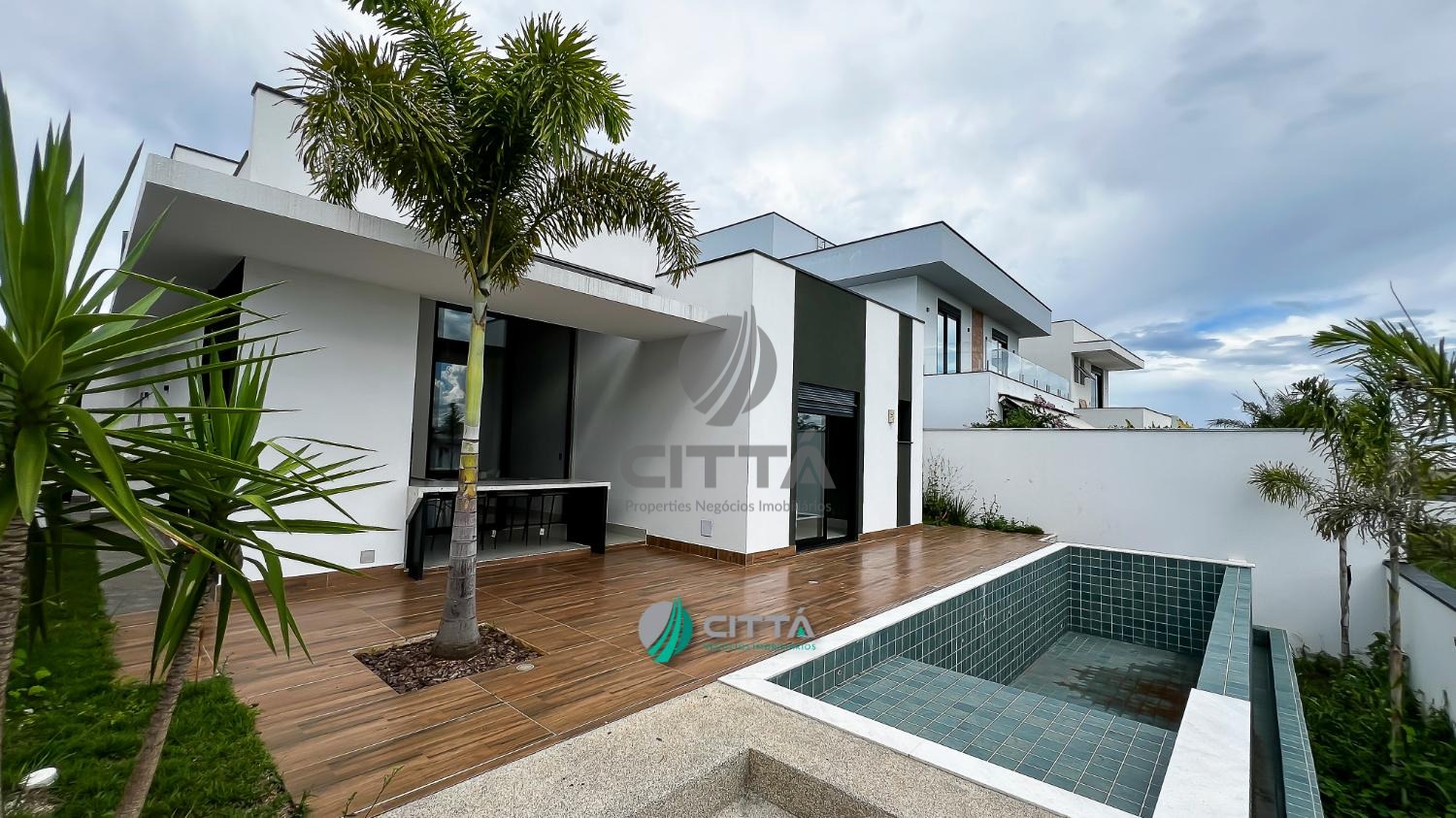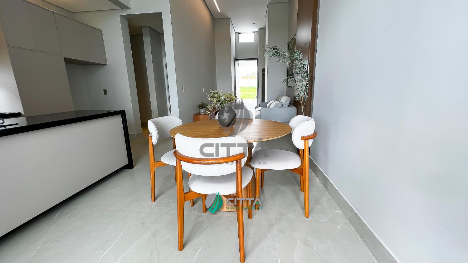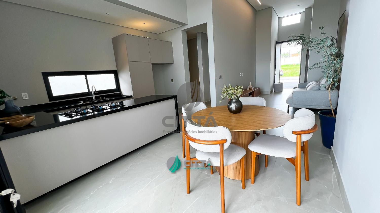 Com 222m² de área construída em um terreno de 423m², esta casa térrea conta com projeto moderno e está totalmente mobiliada, pronta para morar.
