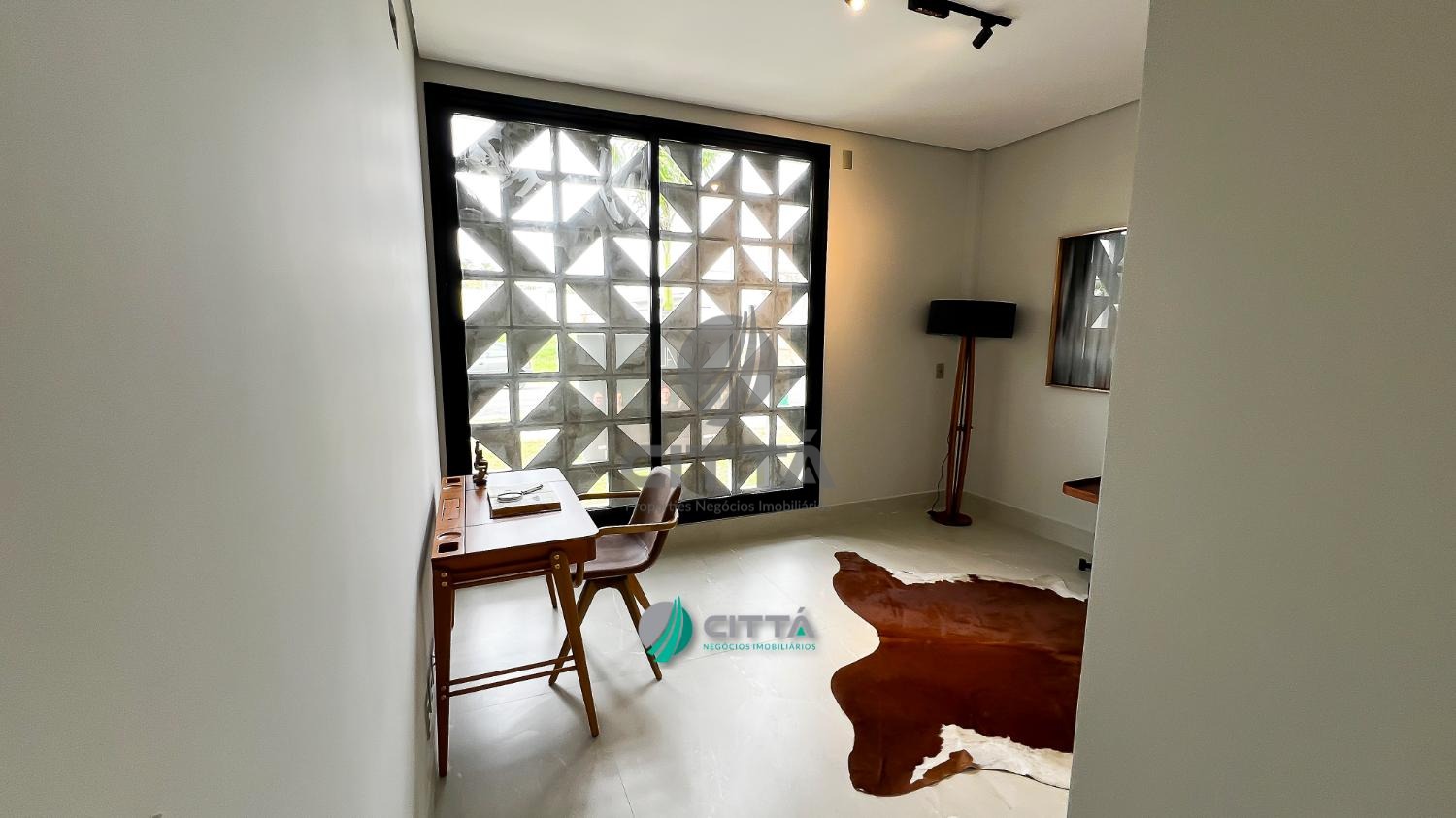 O imóvel dispõe de 4 suítes, sendo 1 master com closet, além de home-office com banheiro (podendo ser utilizado como 5ª suíte). O living é integrado à cozinha americana, proporcionando amplitude e funcionalidade. Conta ainda com despensa, lavanderia e 2 lavabos, sendo um deles com vestiário externo.