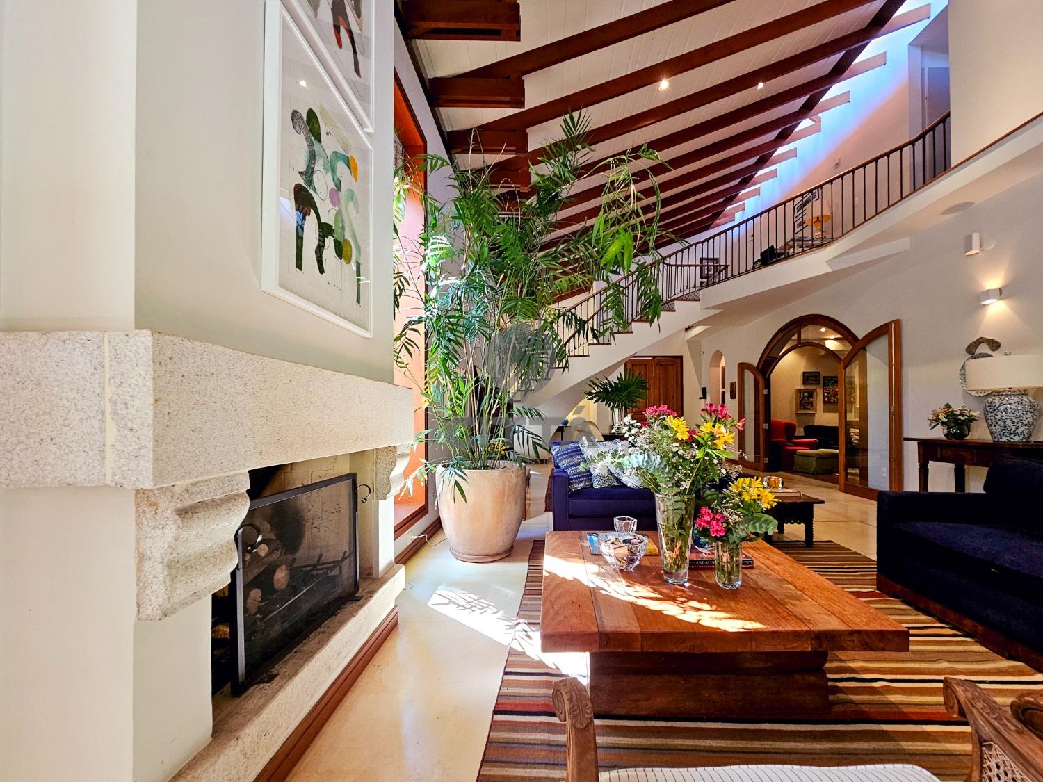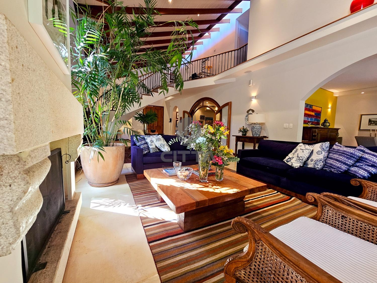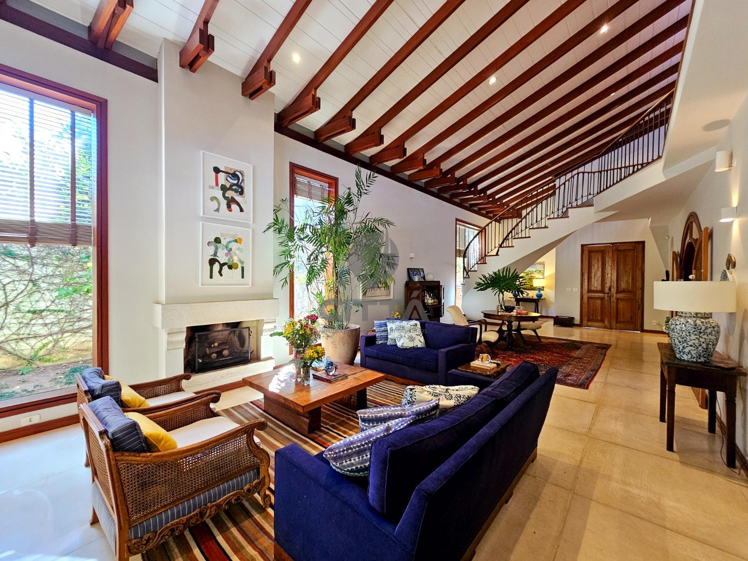 Conta com uma acolhedora sala de estar com lareira, perfeita para os dias mais frios;
