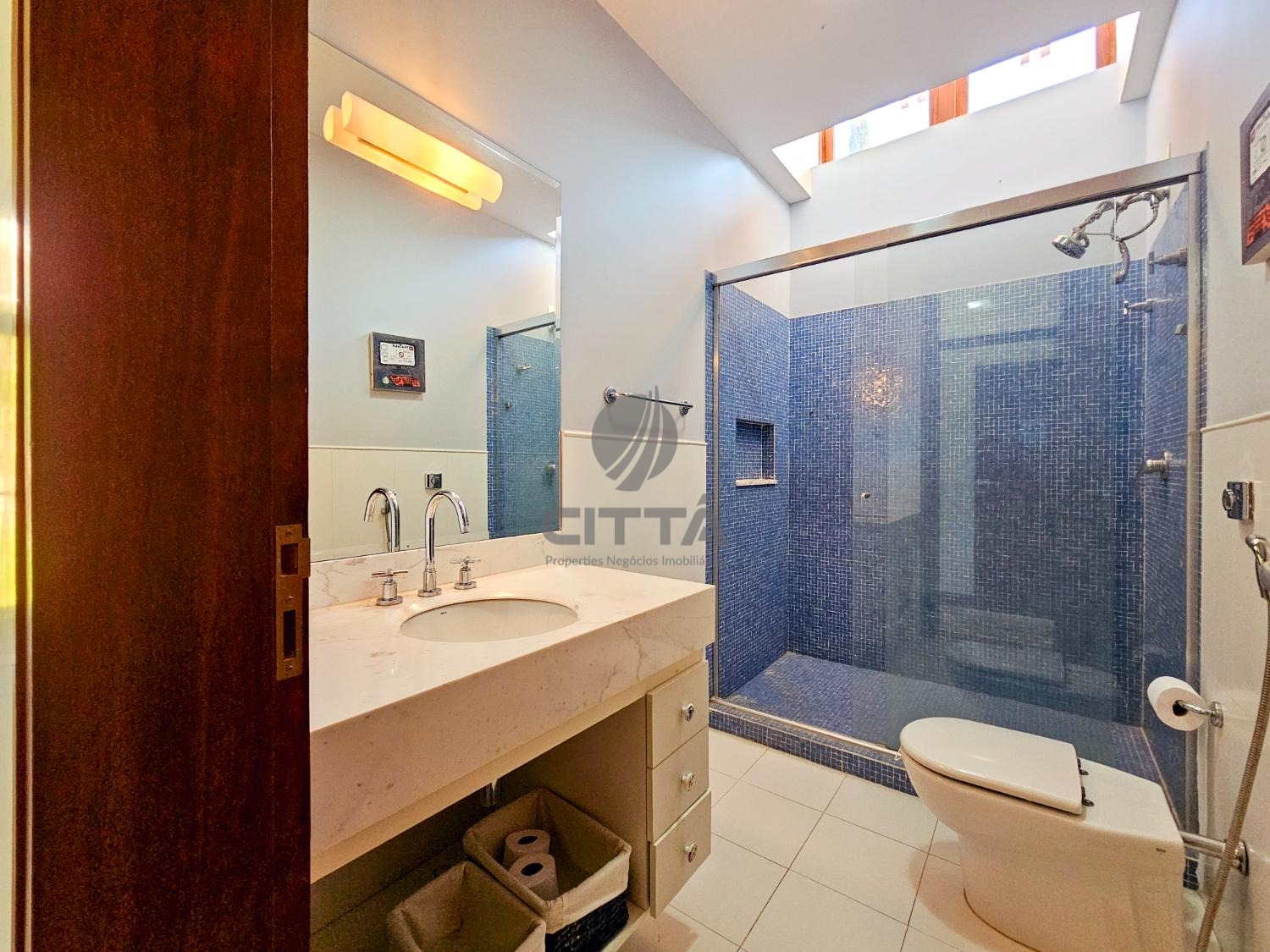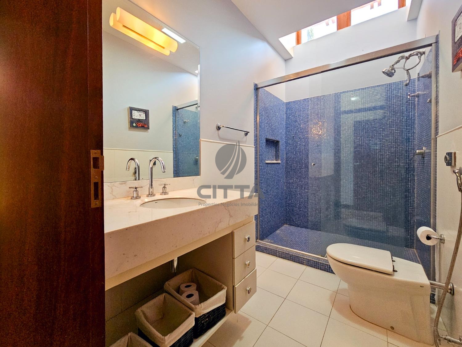 No andar superior, o imóvel oferece total privacidade e conforto com três suítes amplas, sendo a suíte master com closet e banheira para relaxar em grande estilo.