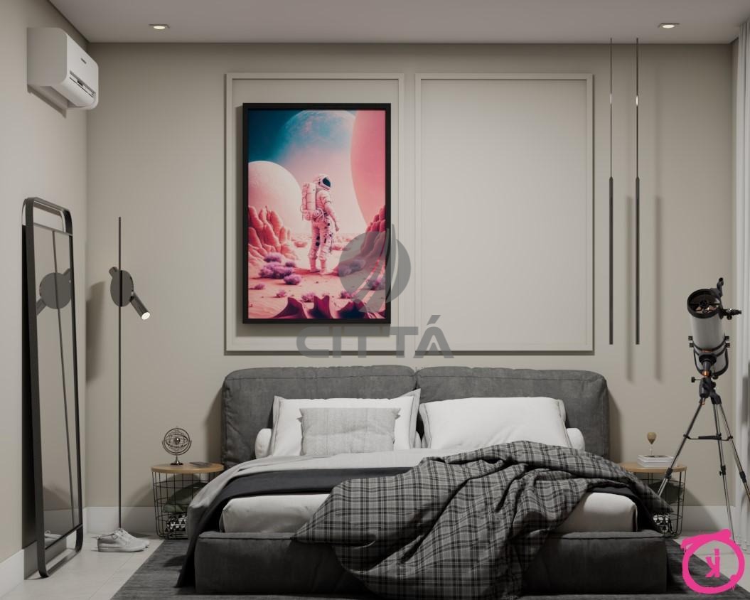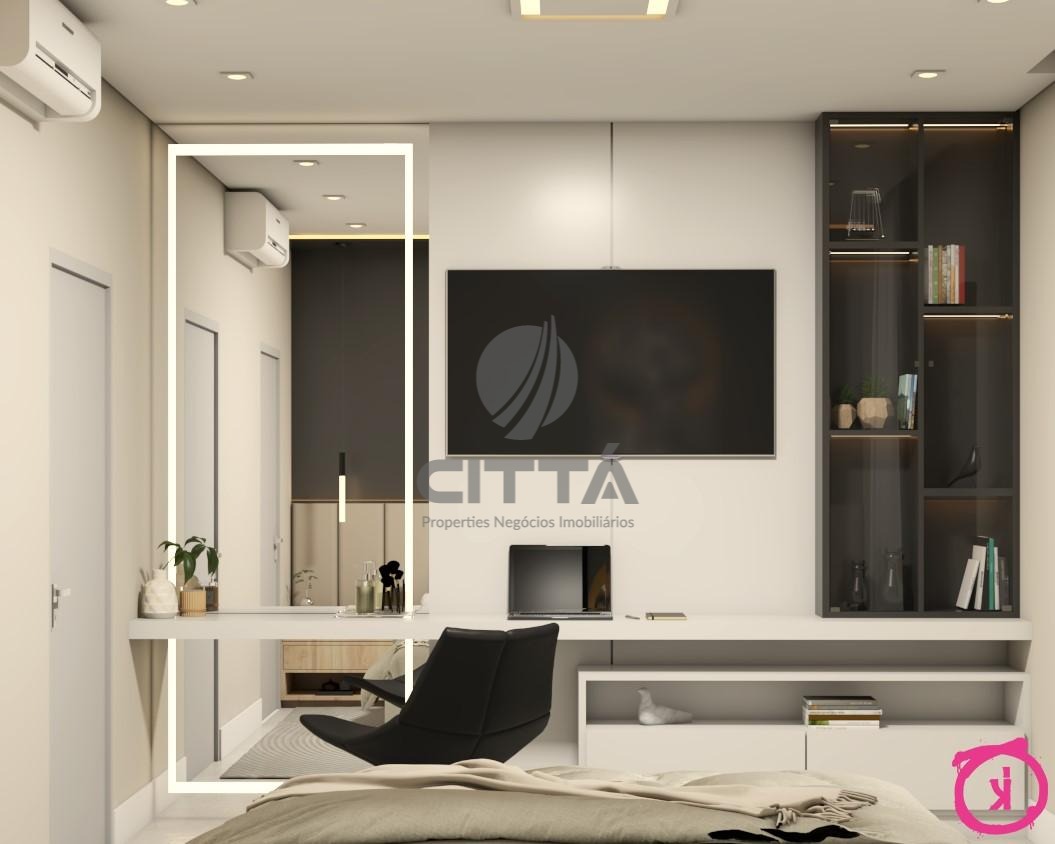 No piso superior, um living para dois ambientes integra conforto e sofisticação, acompanhado de três suítes espaçosas e bem iluminadas.