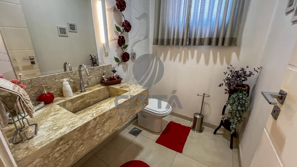 O imóvel conta com excelente infraestrutura, distribuídos em ampla sala de visitas e jantar com pé direito duplo, sala de TV, cozinha planejada com despensa, lavanderia com quarto e banheiro de empregada com armários embutidos.