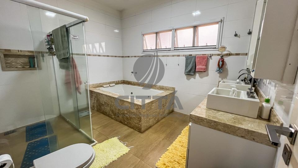 O imóvel possui 4 quartos sendo 2 suítes no térreo sendo 1 com closet e banheira e 2 quartos no piso superior com 1 banheiro social.