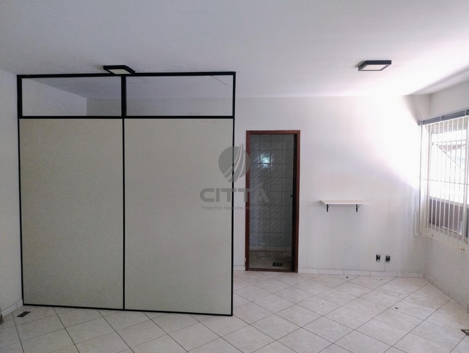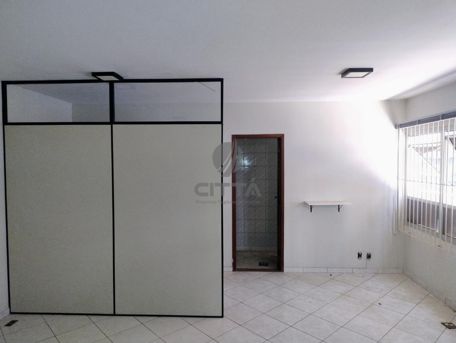 Sala comercial,com piso frio, banheiro espaçõso, com divisoria.