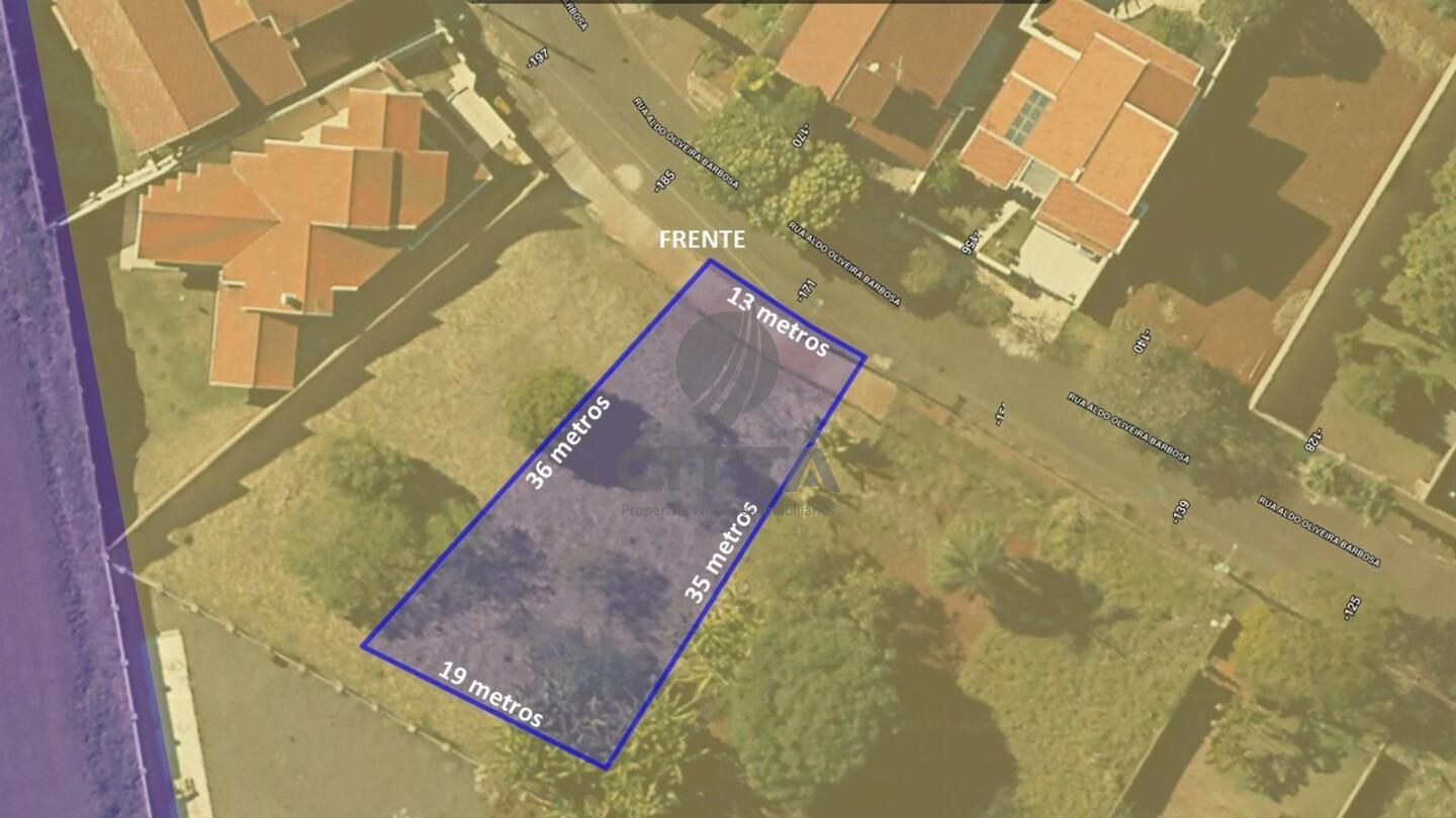 Medidas: Frente 13 metros – Lateral direita 36 metros – Lateral esquerda 35 metros e fundo com 19 metros, com leve aclive.