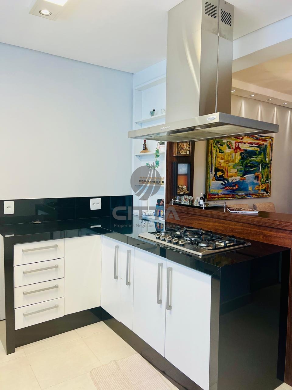 - bancada separando a sala da cozinha com banquetas