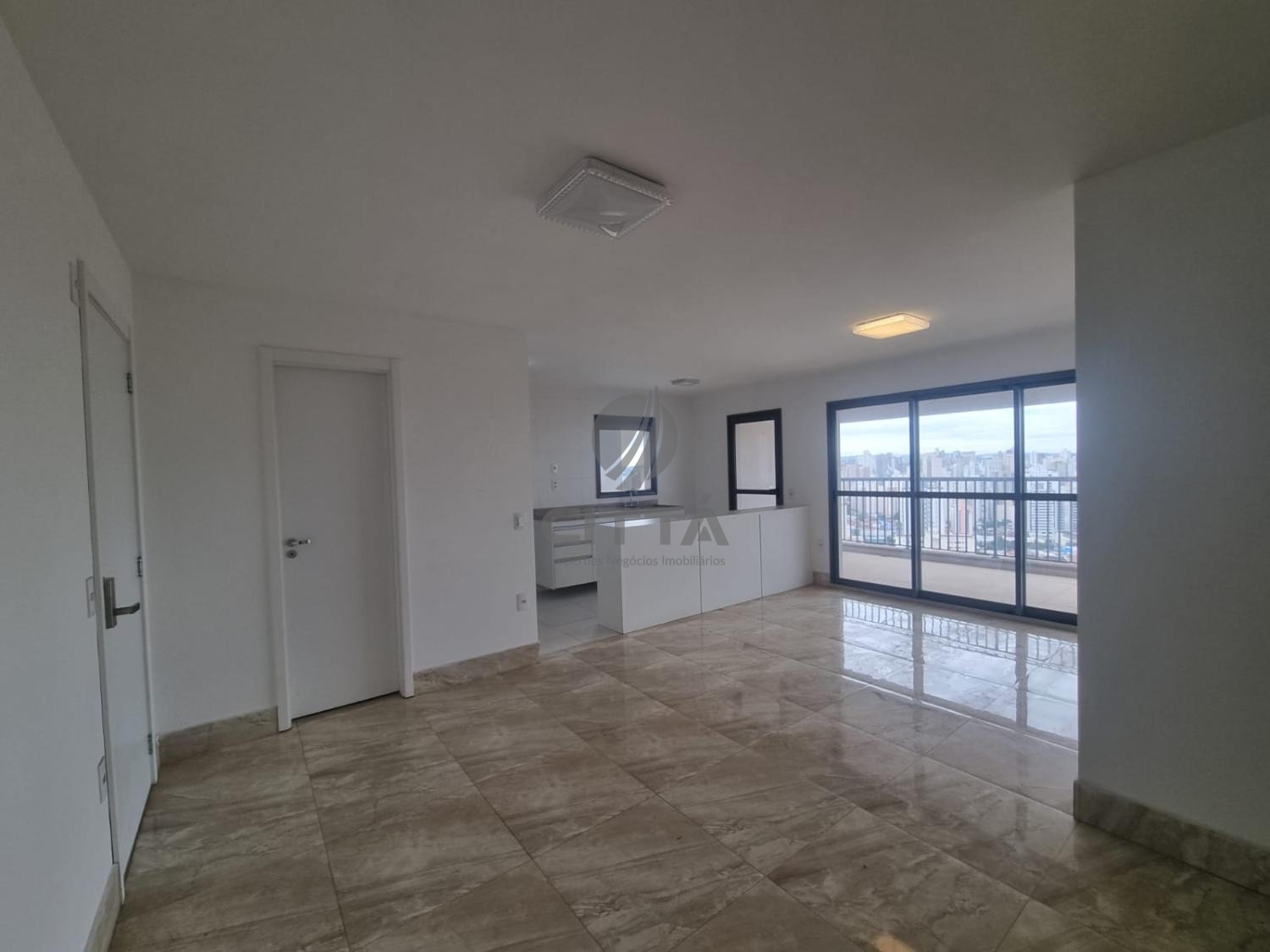 Sala ampla com sacada gourmet.