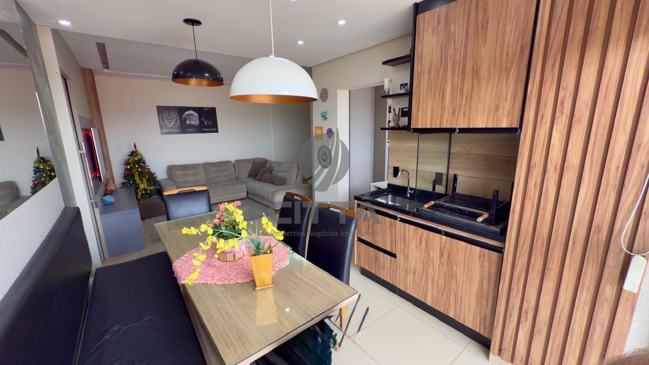 Sendo 2 suítes com armários planejados, sala com varanda gourmet e churrasqueira carvão.