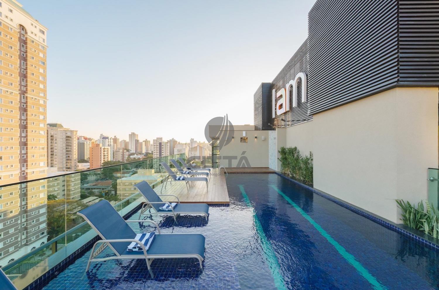 Piscina aquecida com 2 raias de 14m no rooftop e vista para cidade