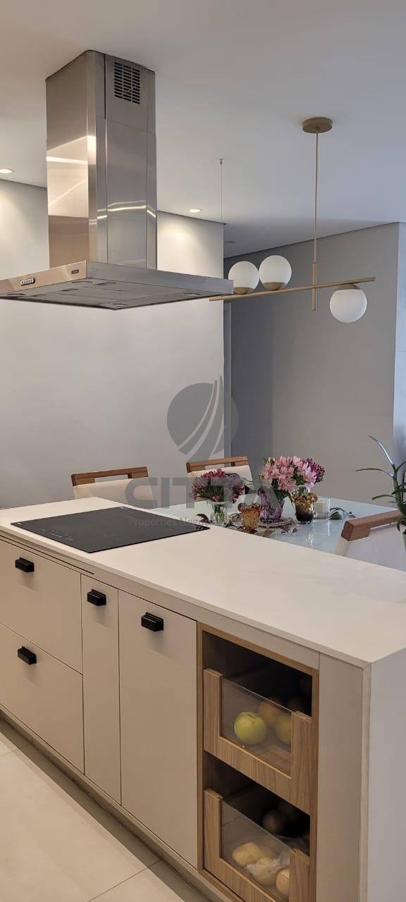 - Cozinha com planejados e ilha central com cooktop e coifa;