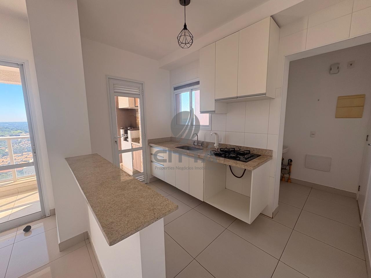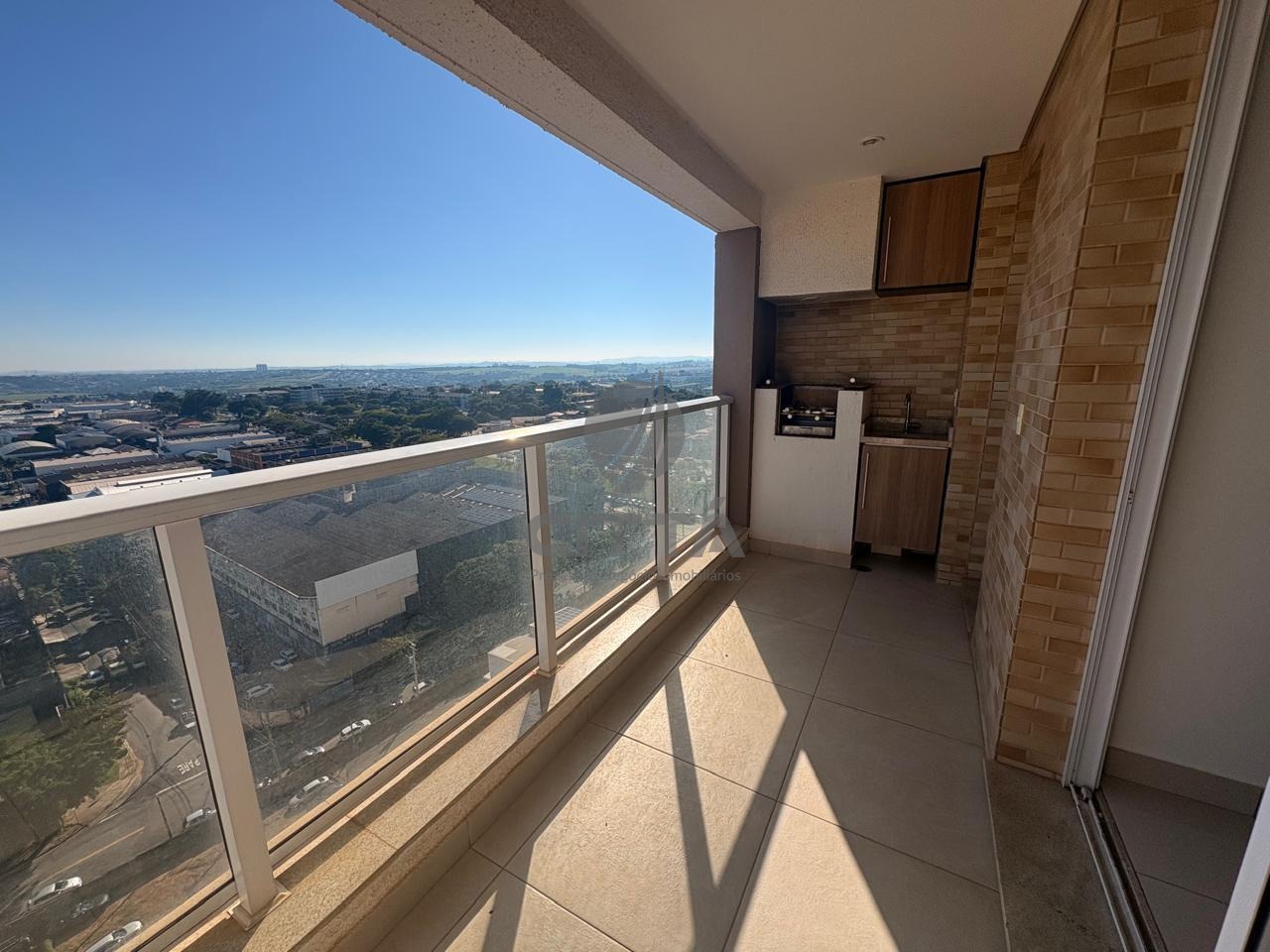 Apartamento em andar alto e sol da manhã, todo integrado, varanda gourmet com churrasqueira e sala.