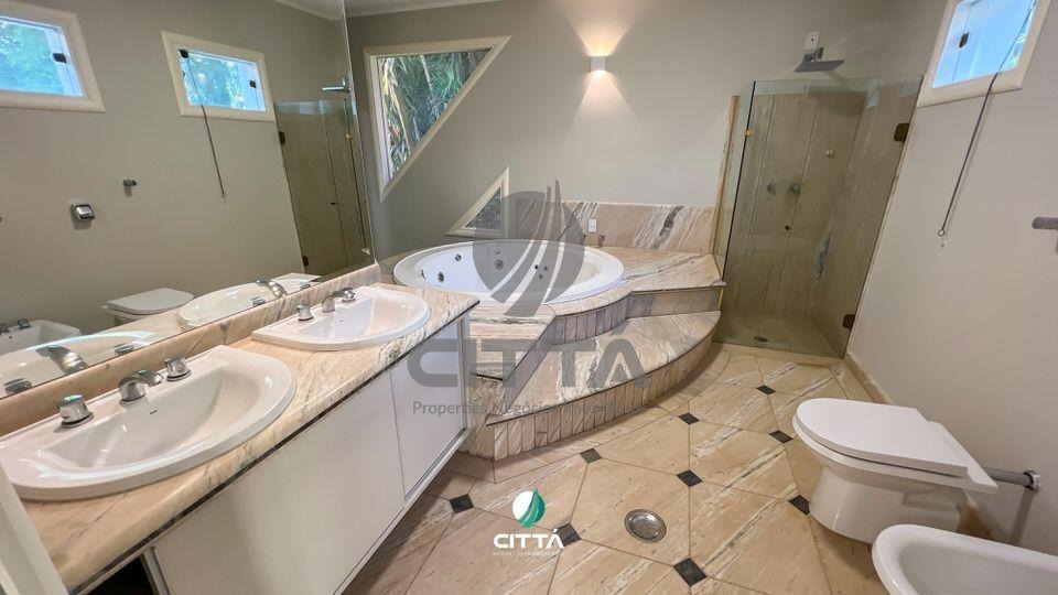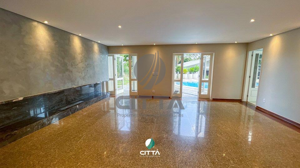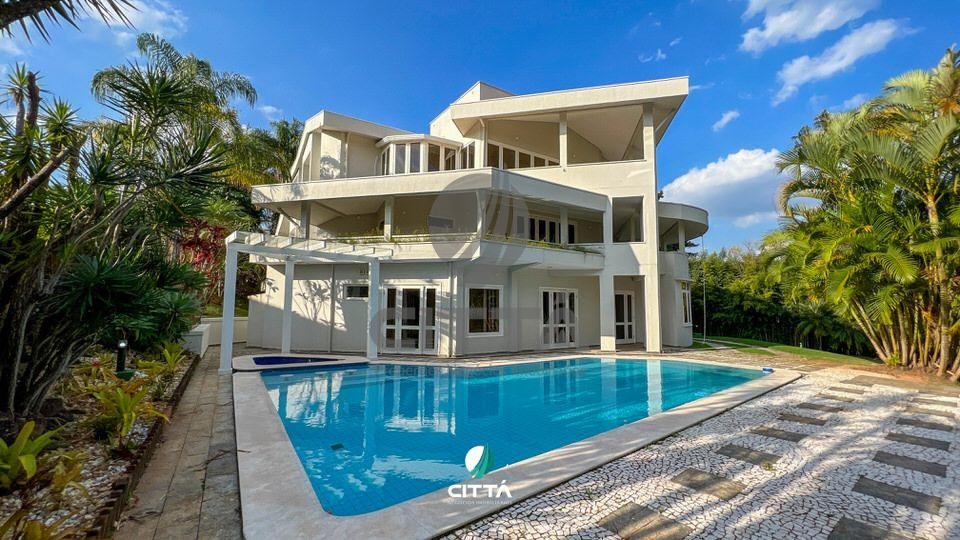 Luxuosa casa em condomínio de alto padrão, com arquitetura cinematográfica, com 3 andares, amplo living com piso em madeira, sala com lareira, salas para home theather, escritório, área para academia, sauna, piscina, espaço gourmet com churrasqueira e salão de festas, 5 suítes com closet, acabamento com alto padrão, banheiros ricos em mármore, quadra de tênis.