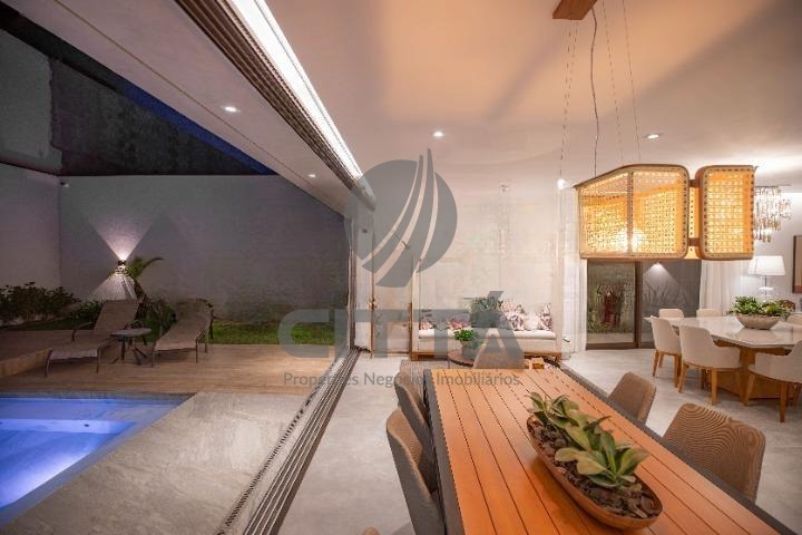Belíssima residência à venda totalmente mobiliada e decorada, com acabamentos de alto padrão e projeto moderno, que privilegia iluminação natural e aproveitamento dos espaços.