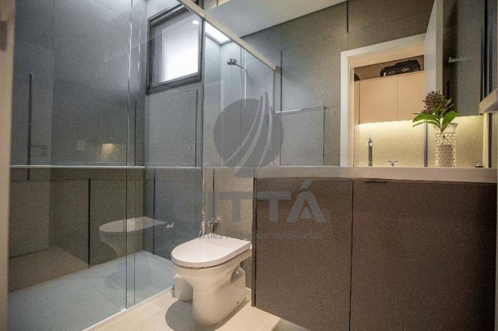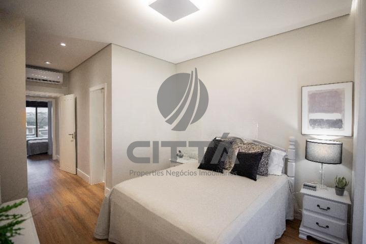 A suíte máster conta com closet iluminado naturalmente, banheiro com cubas e chuveiros duplos, espaço para maquiagem e escritório com ampla varanda.