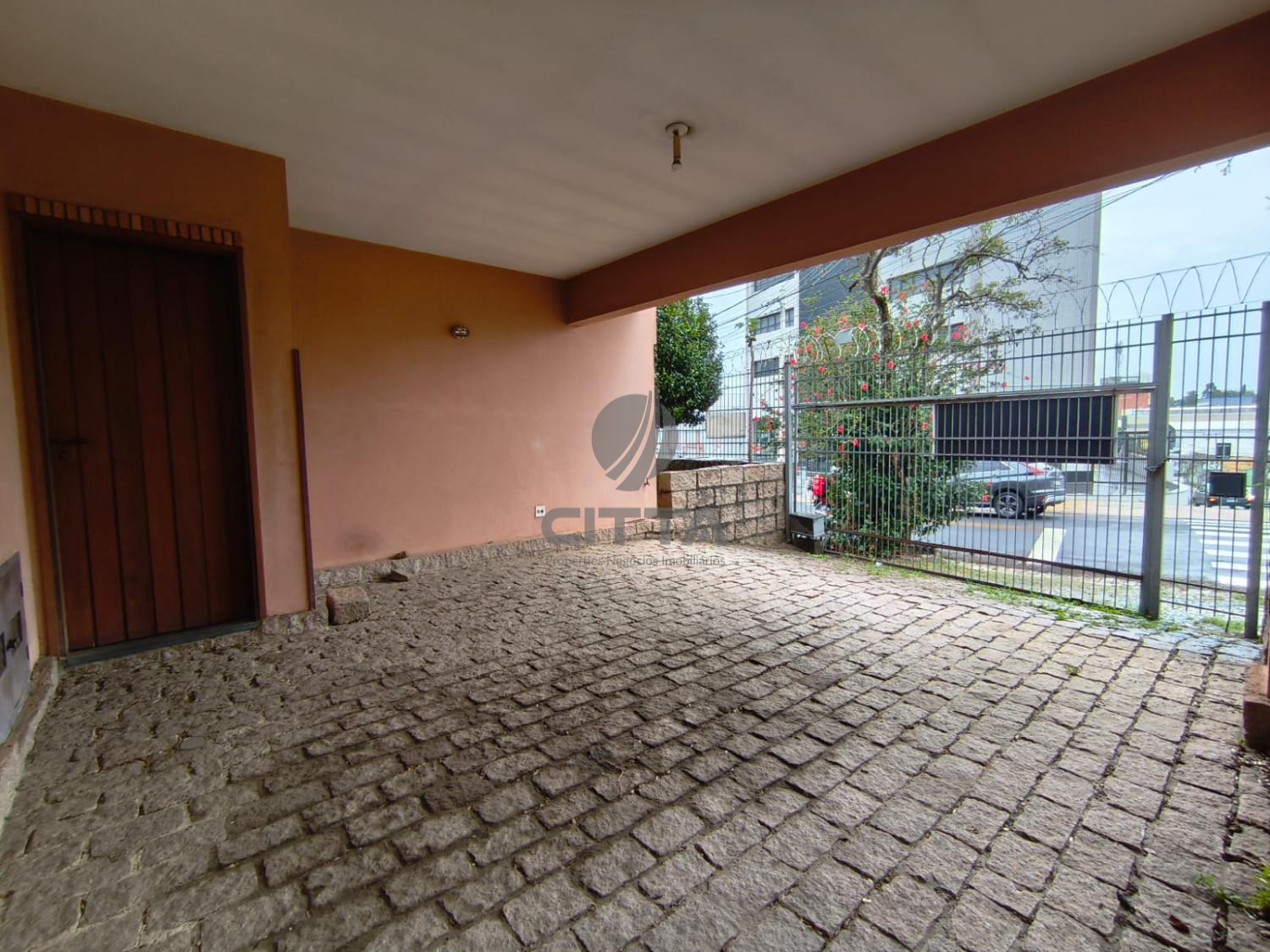 Entrada social, entrada da garagem e entrada comercial independentes.
