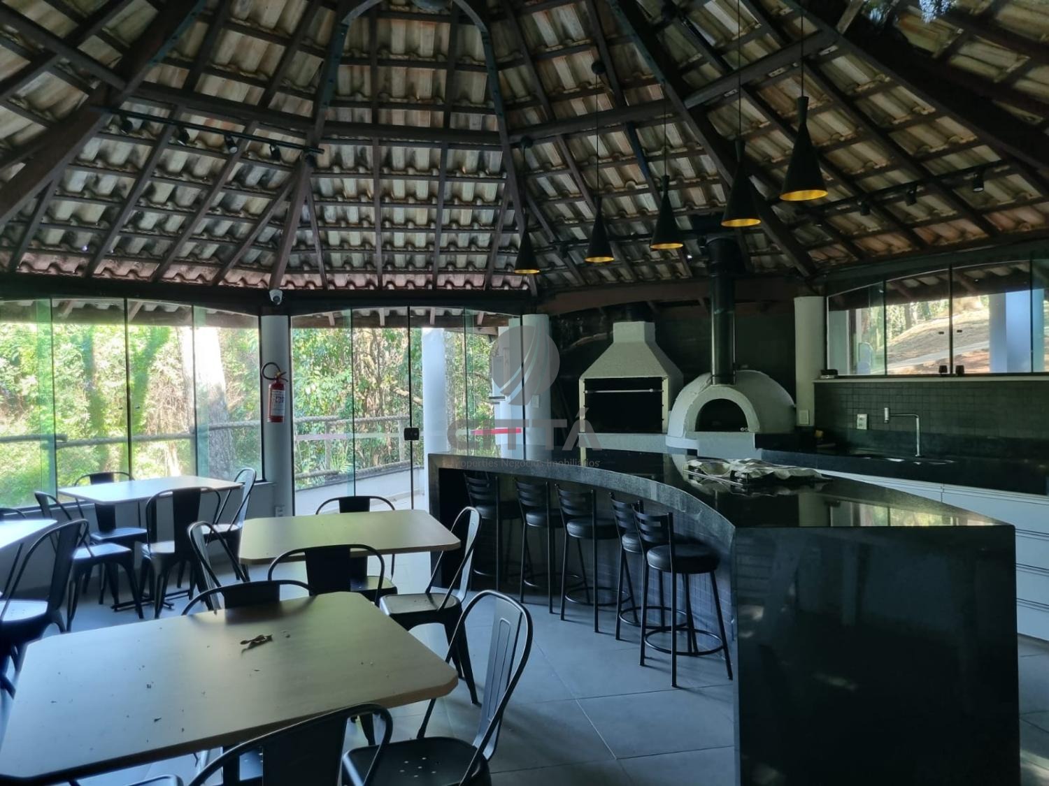 -salão de festas com cozinha gourmet (churrasqueira e forno a lenha) e banheiros