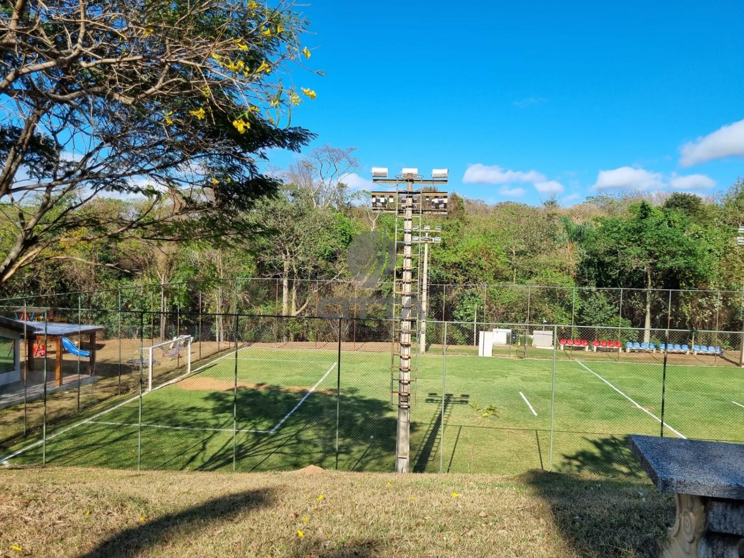 Condomínio com lazer completo, com quadra de tenis, 2 campos de futebol, quadra de beach tennis, lago, capela ecumênica, churrasqueiras gourmet, salão de festas, sala de jogos, clube com piscinas, academia completa, restaurante e segurança armada 24h.