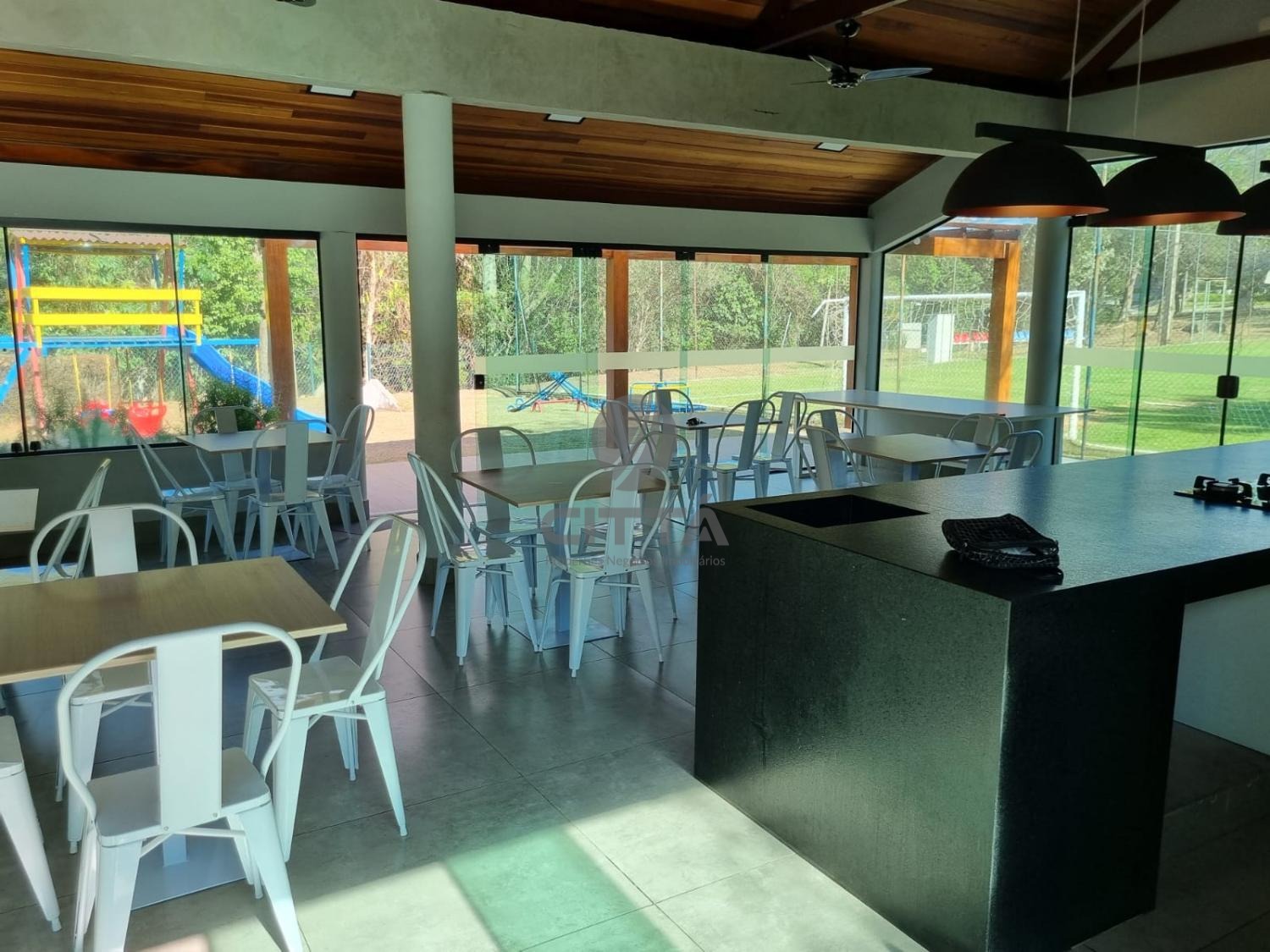 -salão de festas com cozinha gourmet (churrasqueira e forno a lenha) e banheiros