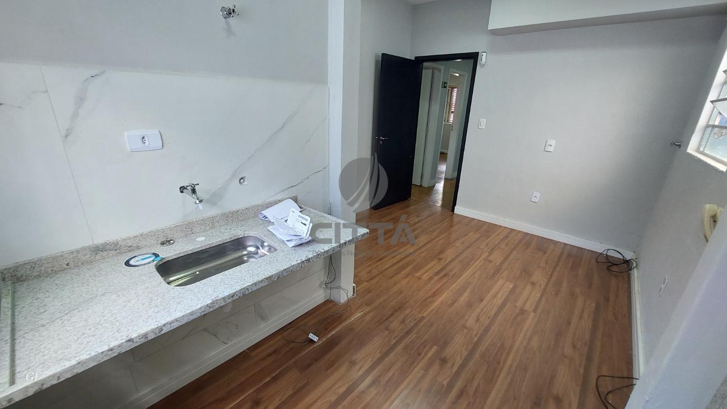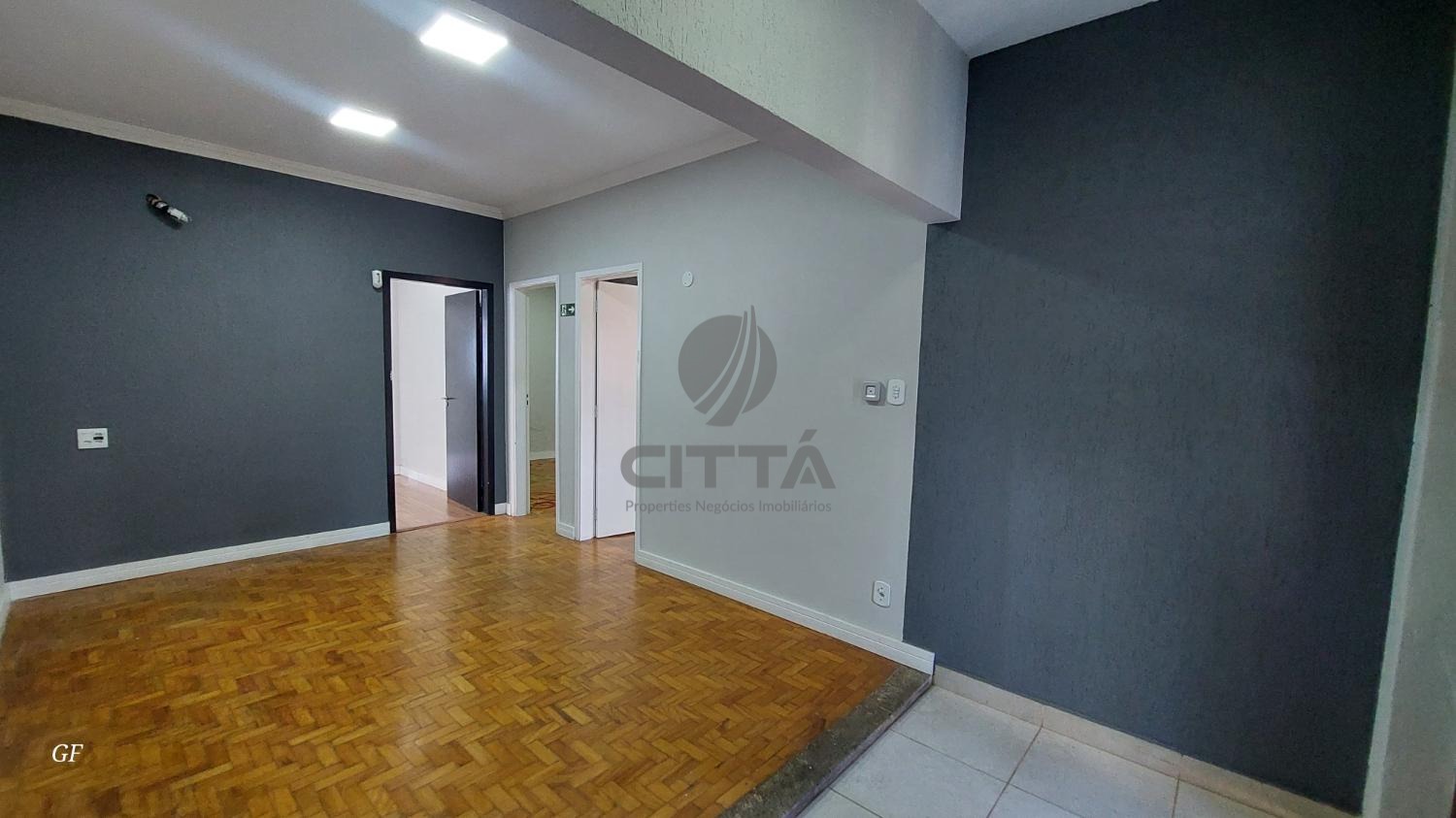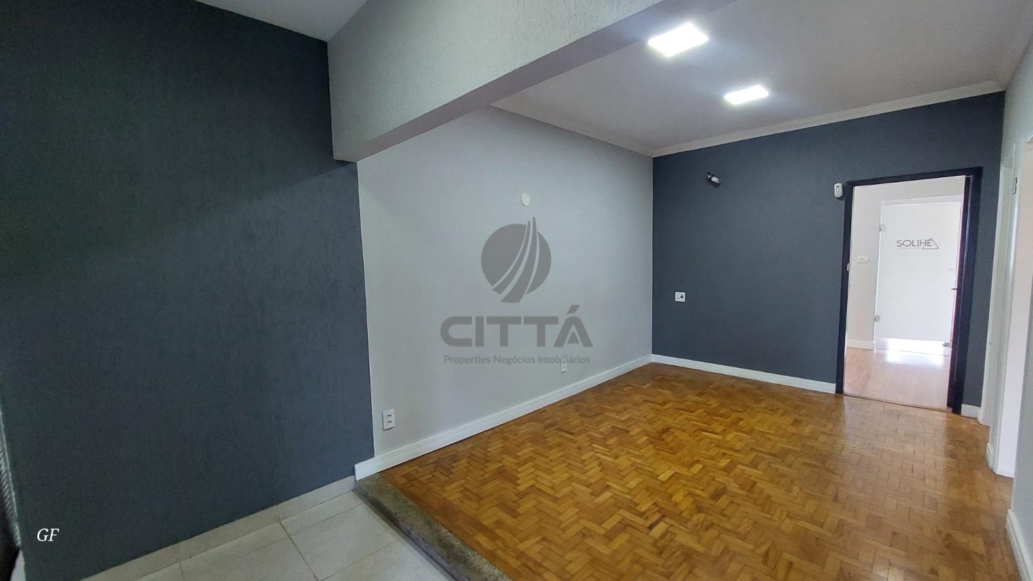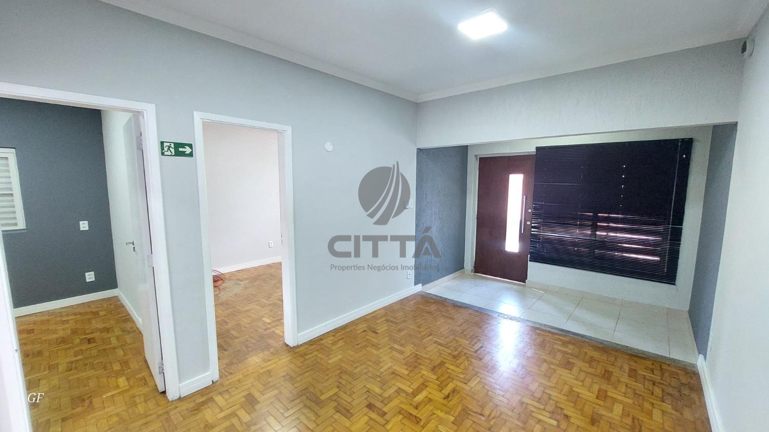 Sala de entrada com 2 ambientes (recepção + sala maior)