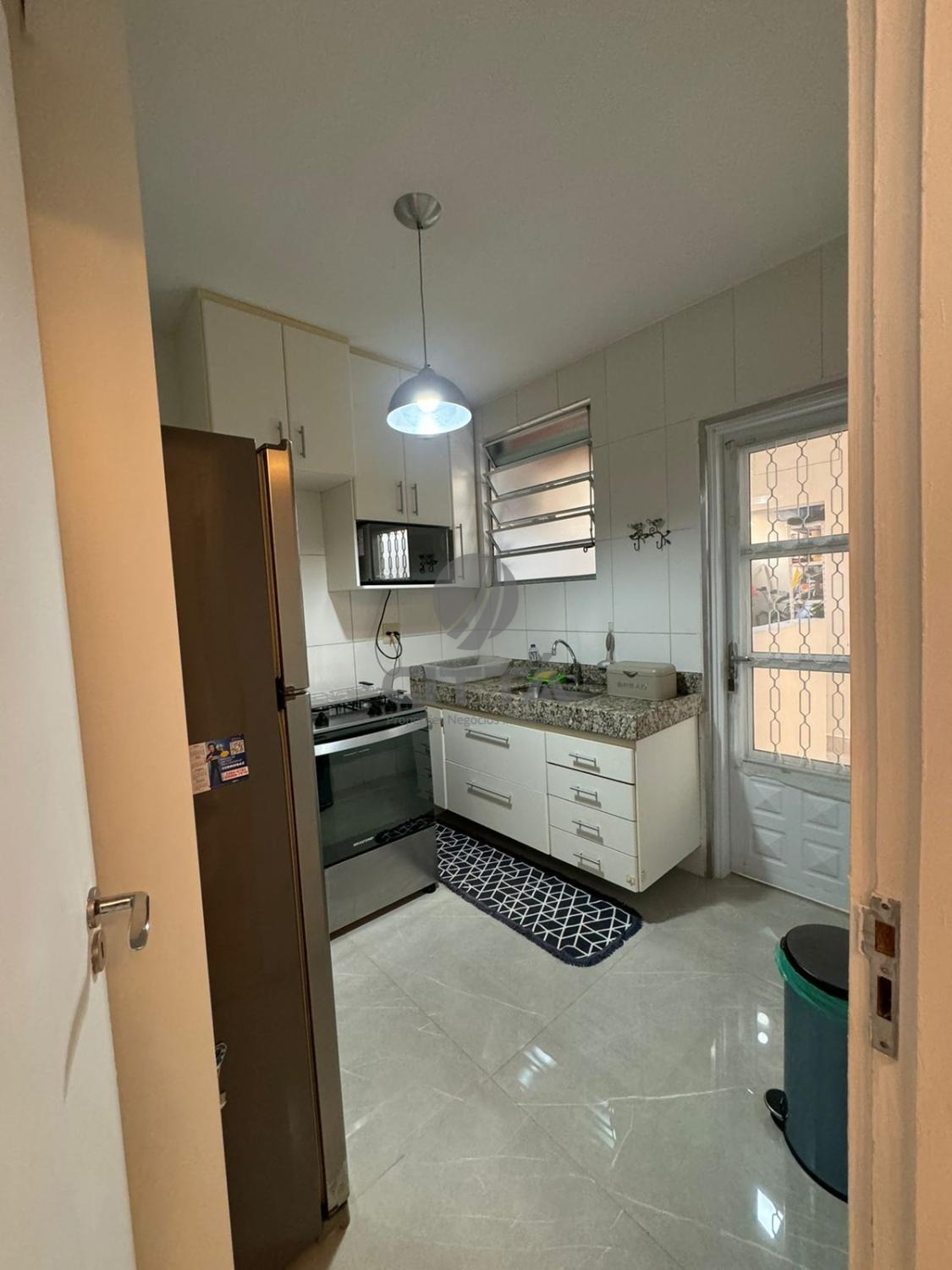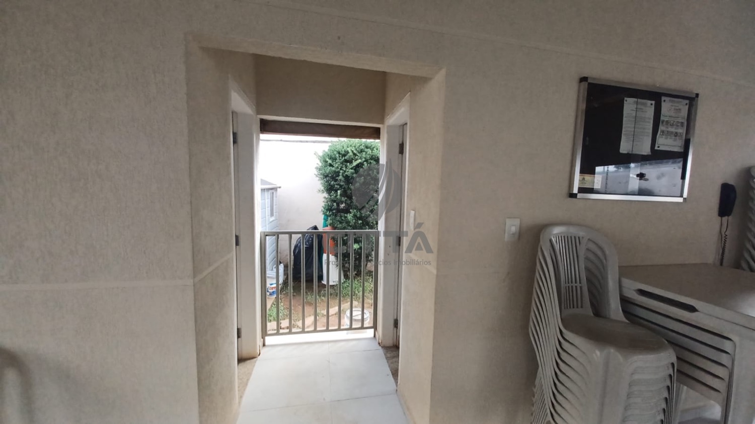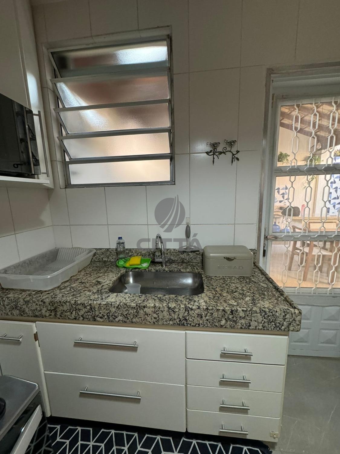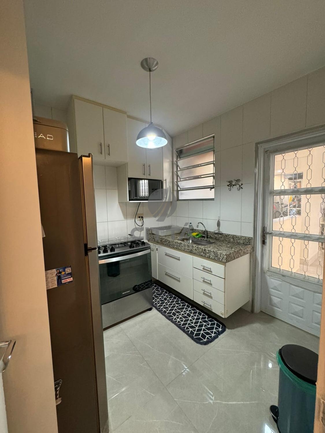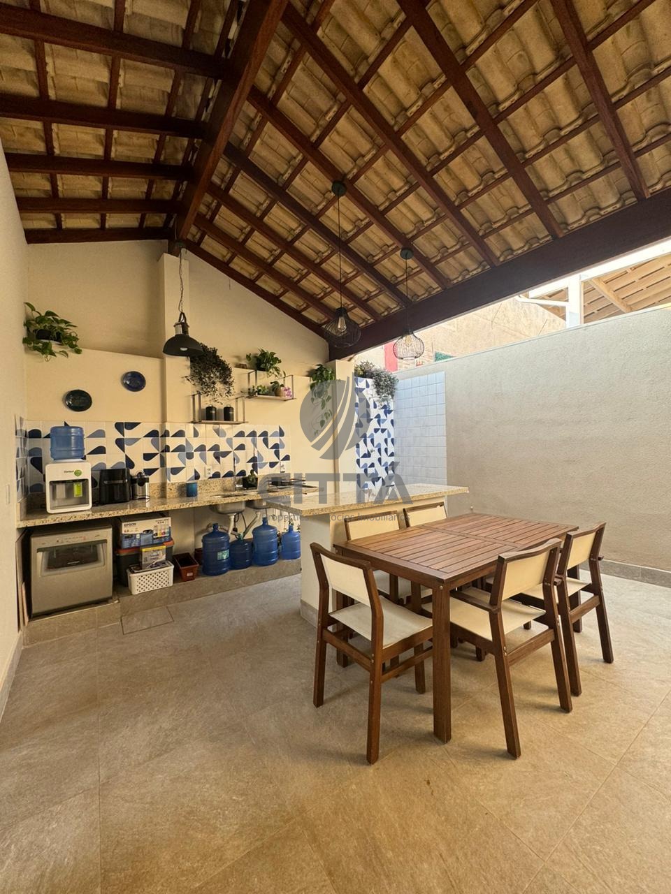 Sala ampla com cozinha, lavabo, quintal e área de serviço.
