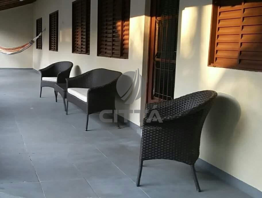 Casa principal com 3 dormitórios sendo 2 suítes, salas living com belo espaço (2 ou 3 ambientes), copa, lavabo e cozinha completa com armários.