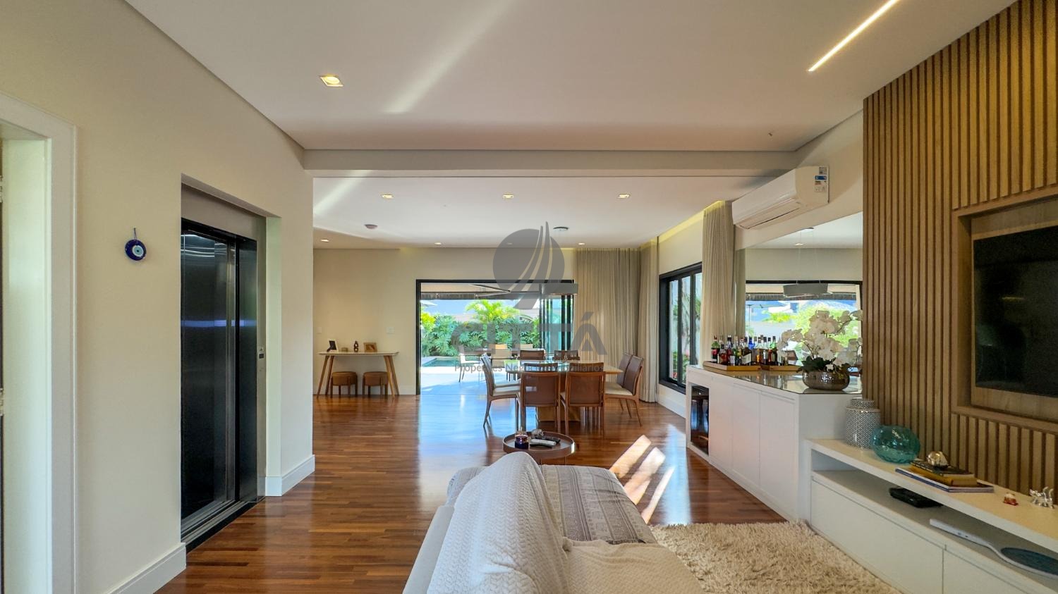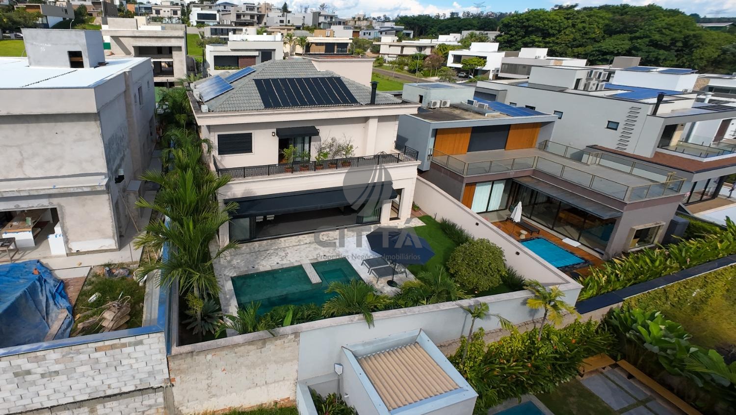 O imóvel também possui energia solar, ar-condicionado e está mobiliado.