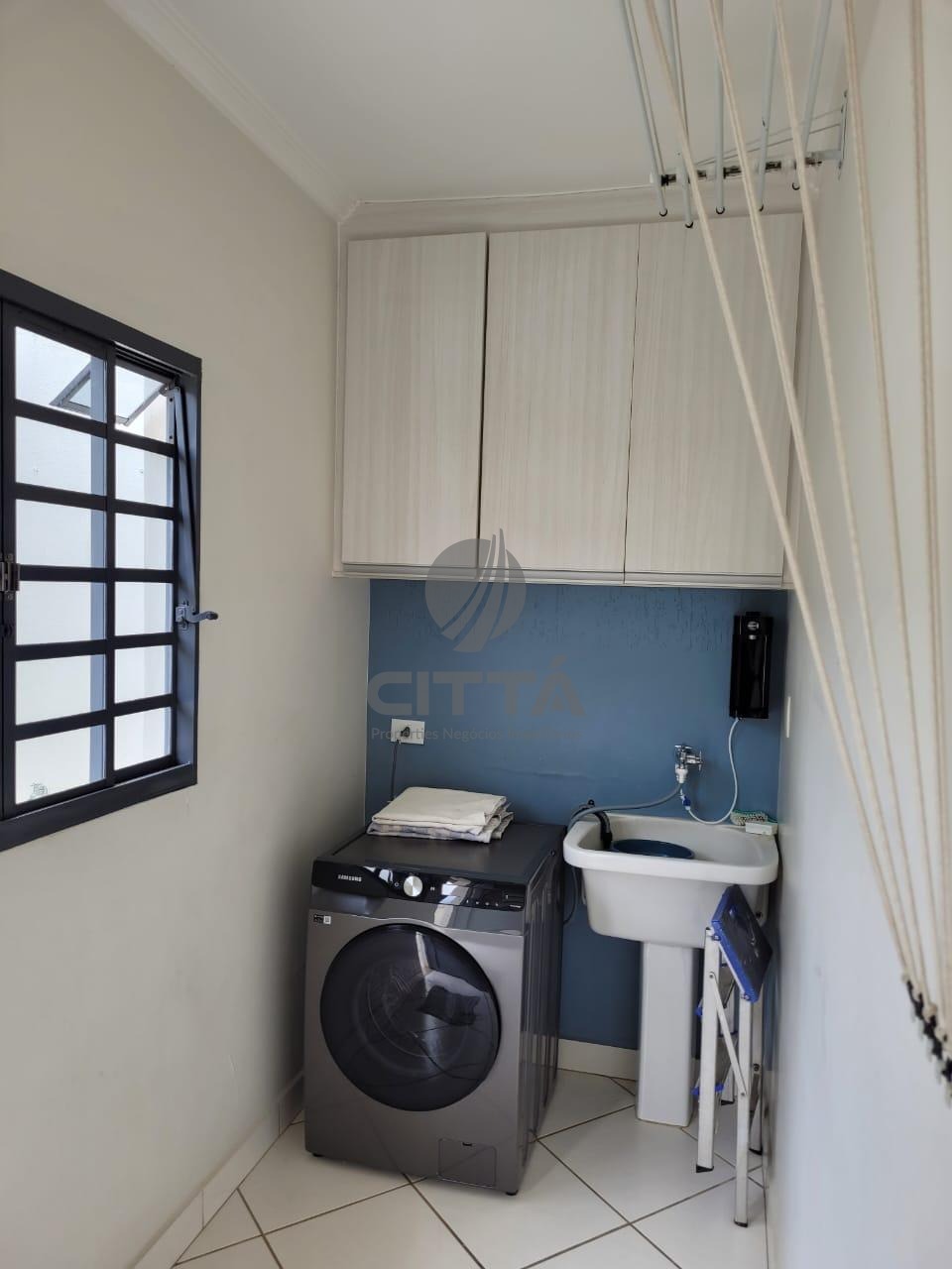 Área de serviço integrada e quintal com espaço de sol