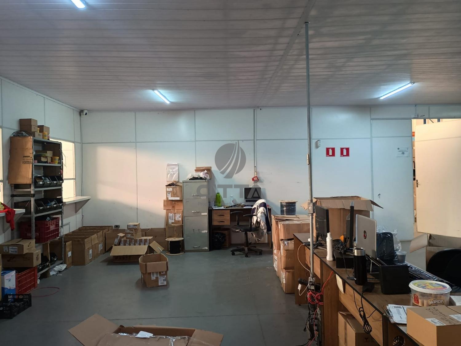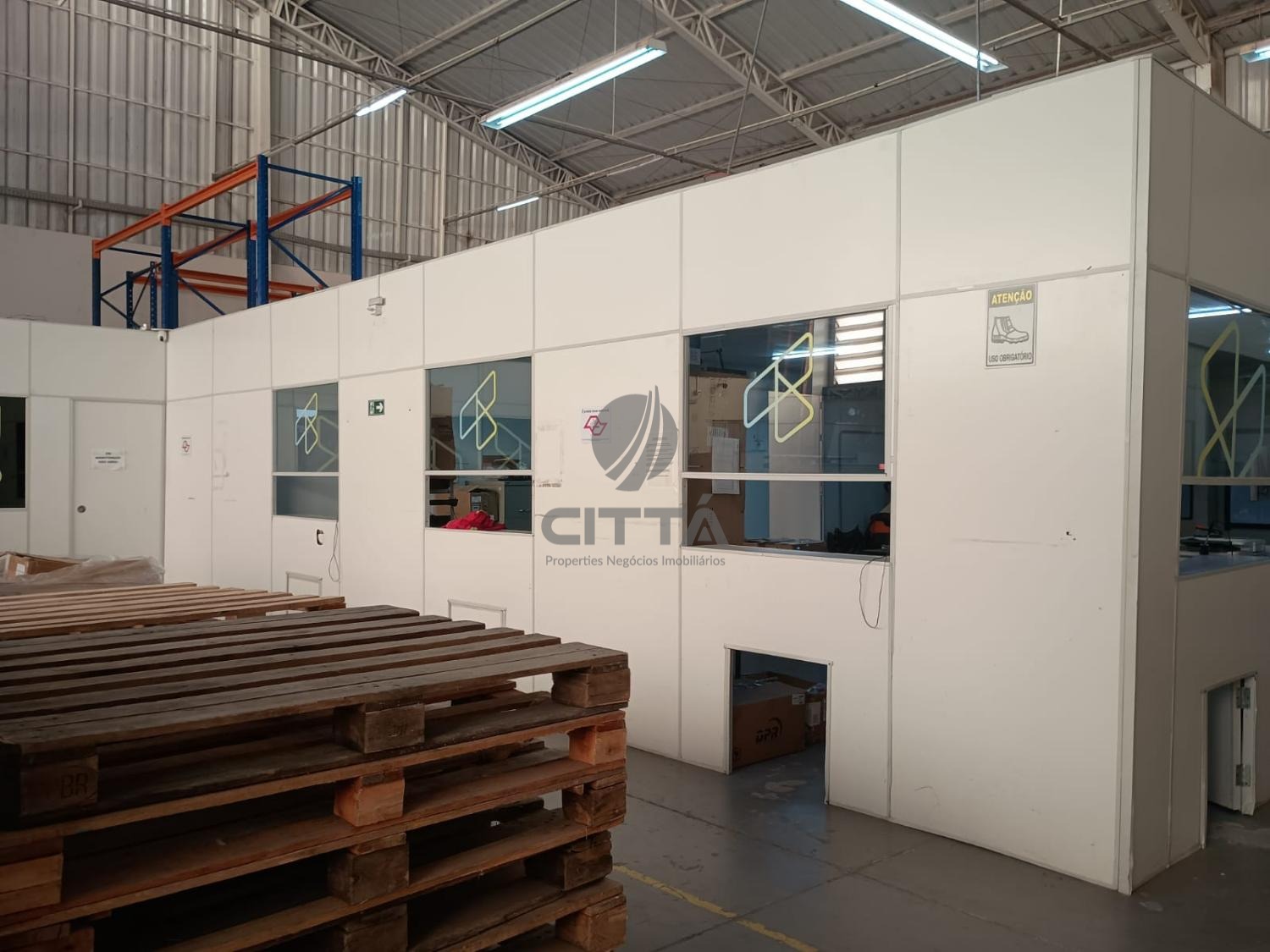 Galpão com recepção, banheiros, copa e mezanino para escritório, tudo em perfeito estado.