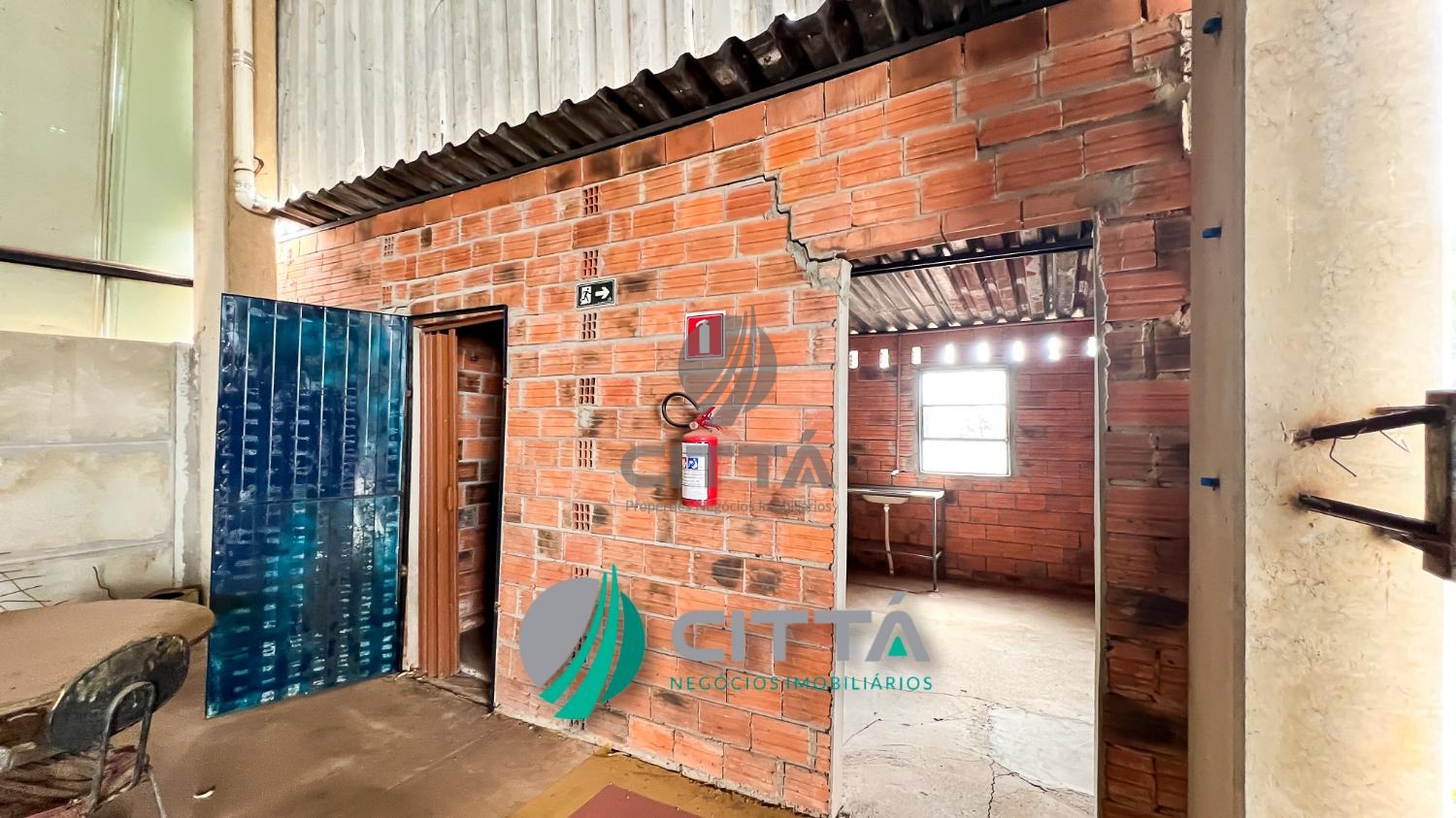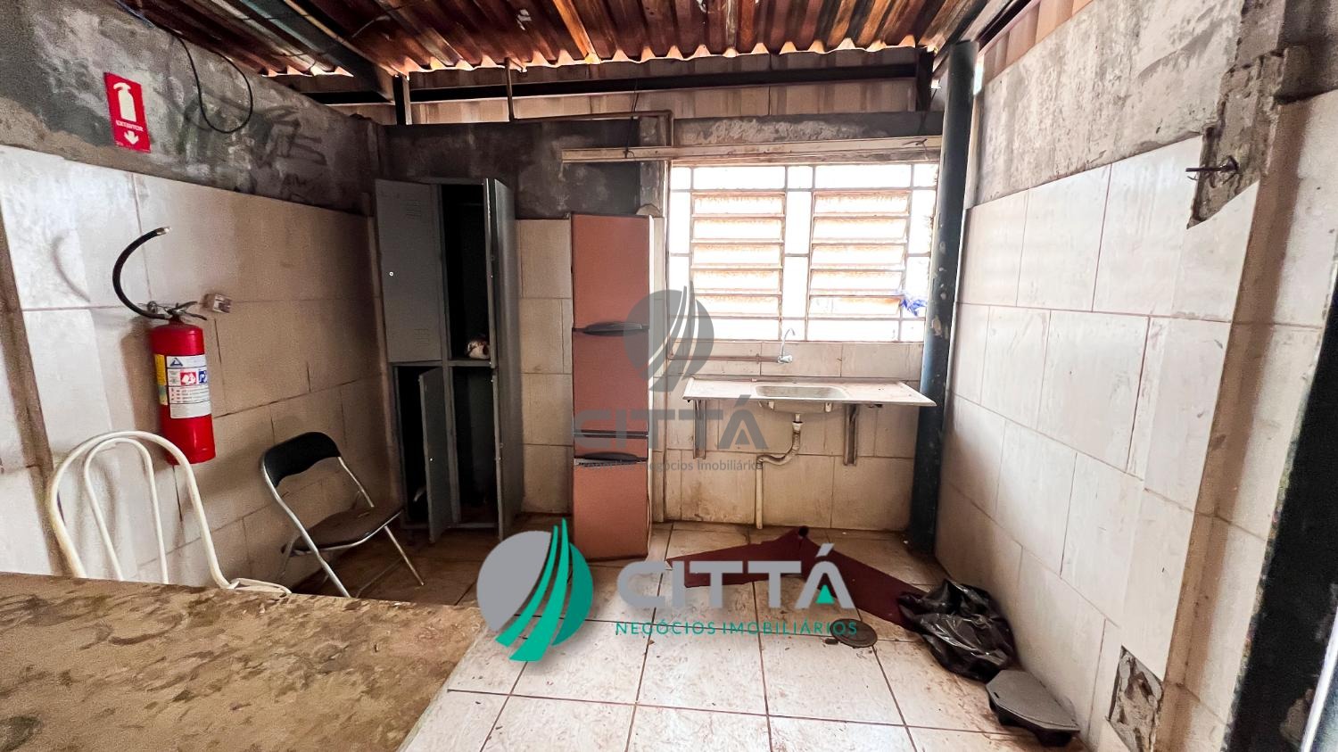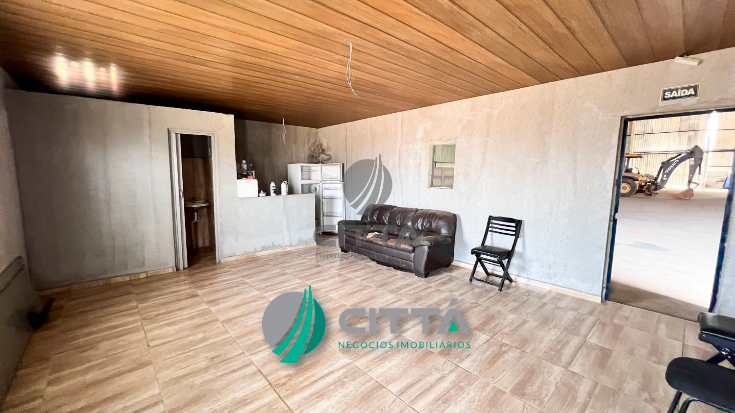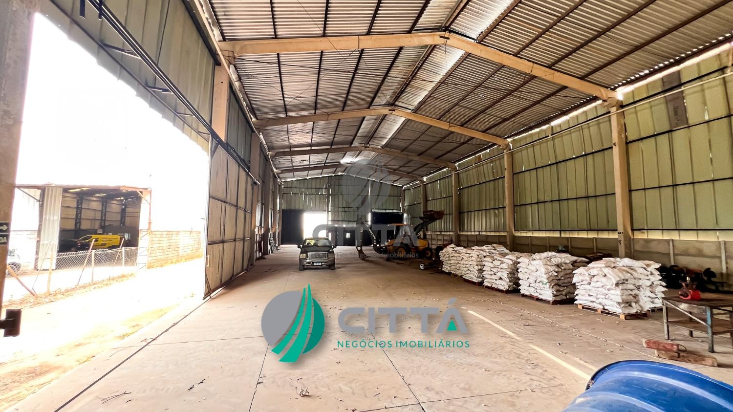 Está distribuído em escritório, refeitório, vestiário feminino e masculino, doca entrada de carreta, piso de tráfego pesado, poço artesiano, está todo cercado de alambrado.