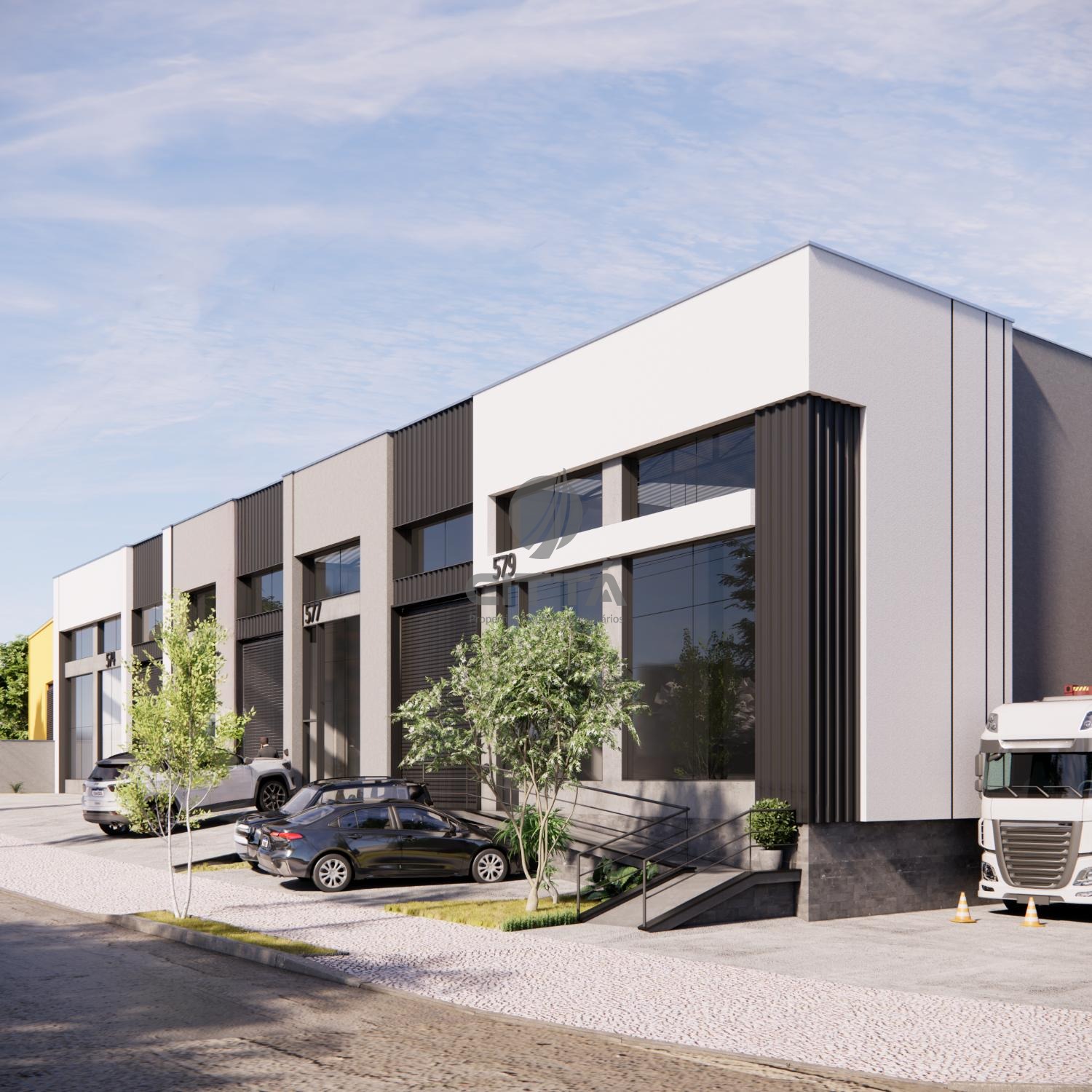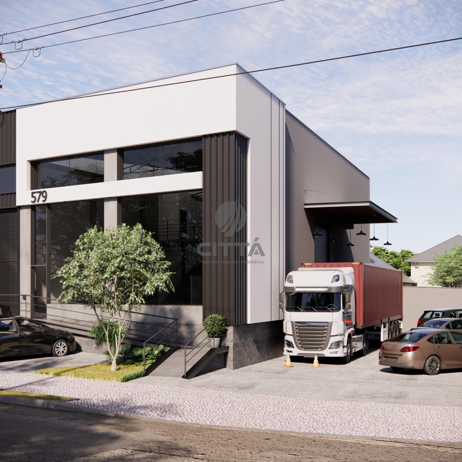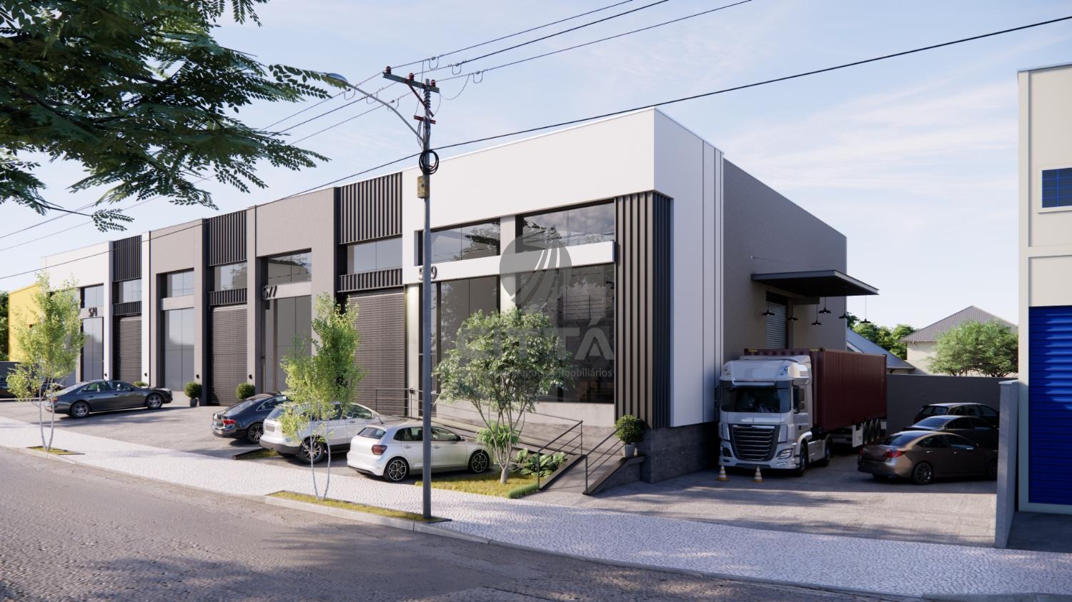 Complexo com 3 galpões comerciais, que podem ser alugados fracionados em espaços de 400m² em média ou unidos em um único bloco de 1.279,29 m².