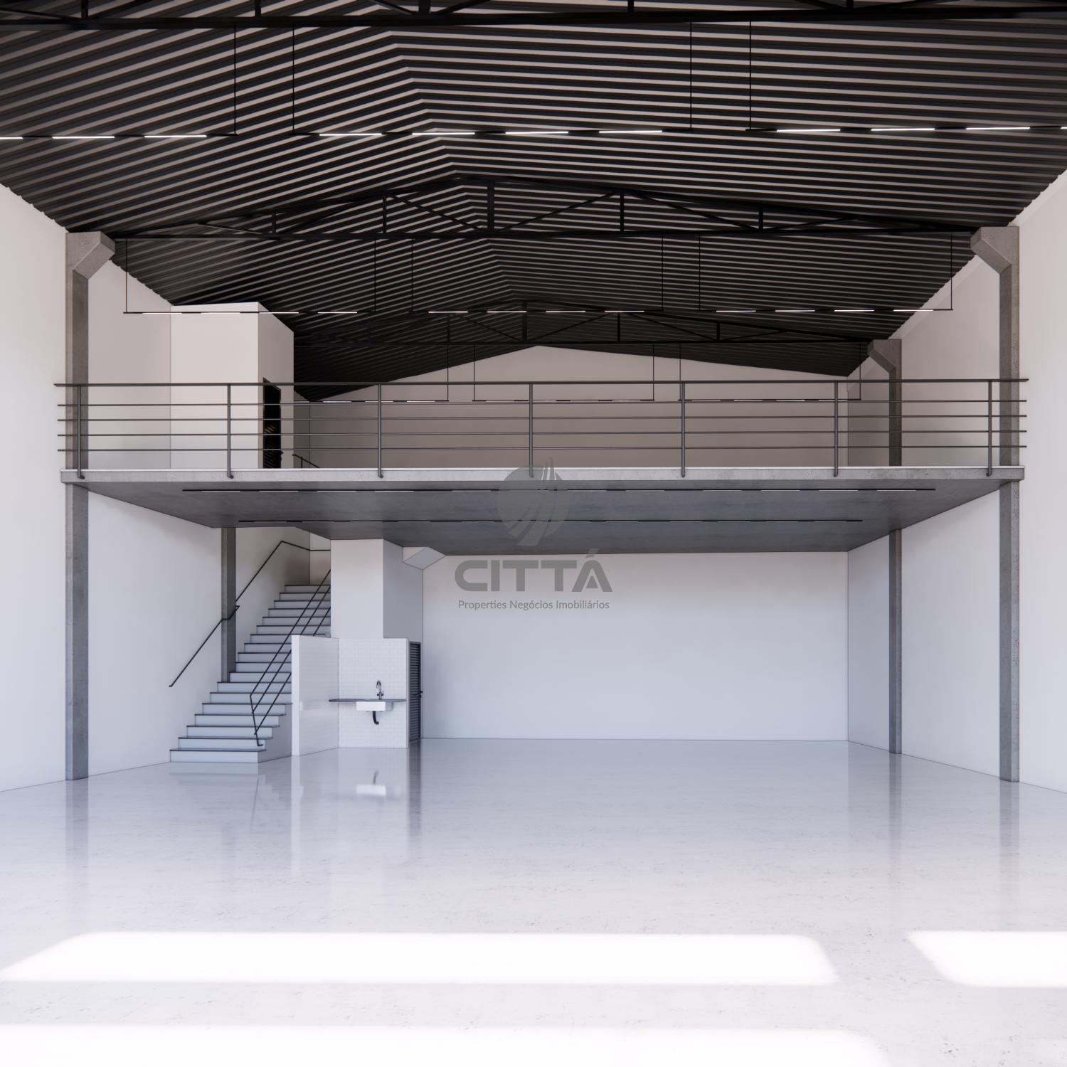 Está opção conta com um térreo de 302,99m² com 2 banheiros um deles já configurado para PCD, copa e um mezanino de 98,67 com banheiro.